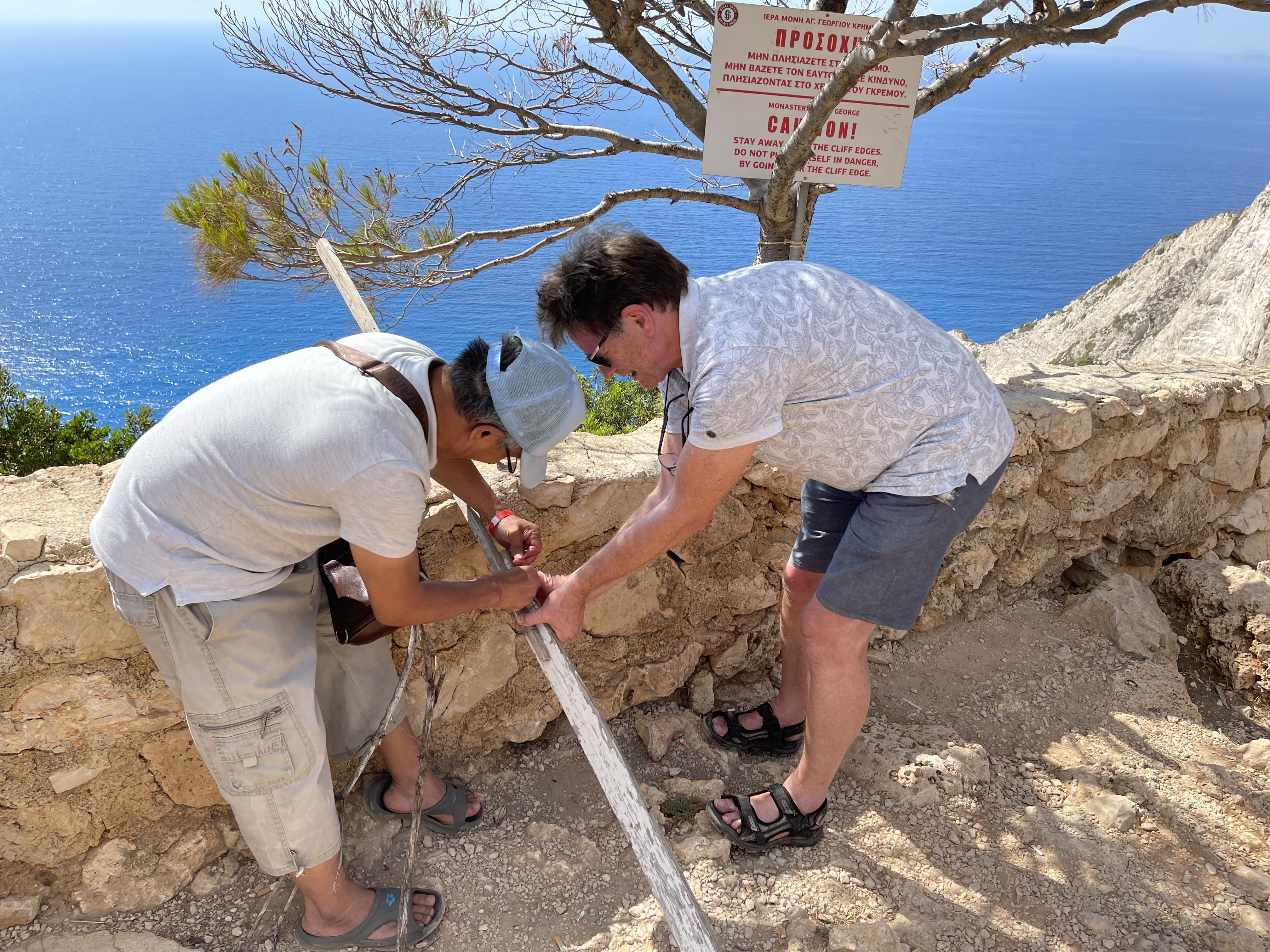 잠시 후 난간에 서서 구경하는 사람들이 웅성거린다. 돌발상황이 일어났기 때문이다. 한 사람이 사진을 찍으려고 하다가 스마트폰을 그만 놓쳐버렸다. 불행히도 난간 위가 아니라 낭떠러지 위로 떨어졌다. 두 서너 명이 서로 손을 잡으면 쉽게 주울 수 있는 거리다. 그리스 현장 통제원은 한치도 양보없이 이를 허락하지 않자 스마트폰을 놓친 네덜란드 부부는 어떻게 해결해야 할 지 난감해 한다. 이런 일이 한 두 번 일어난 것이 아닐텐데 아무런 도구가 비치되어 있지 않는 것이 의아하다.