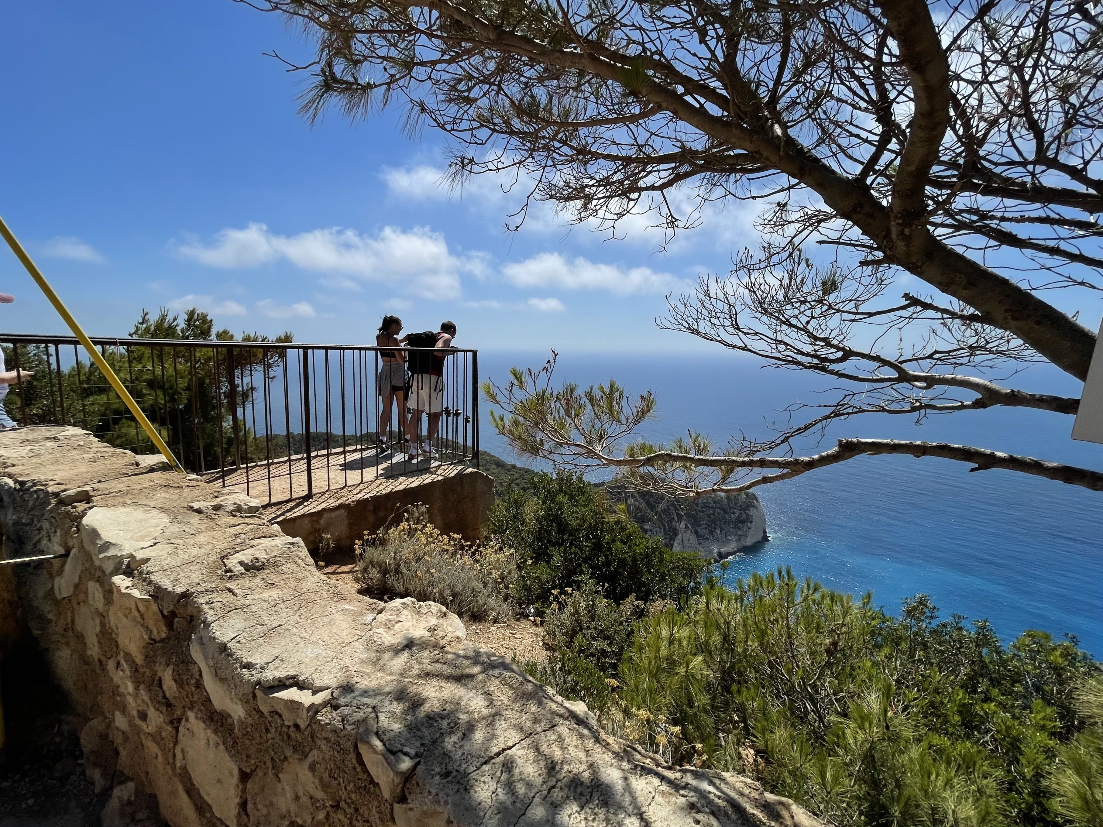 사진으로 본 나바지오 해변이 바로 눈앞에 펼쳐질 줄 기대했는데 흔히 보이는 넓은 바다가 시야에 제일 먼저 들어온다. 어디에 꼭꼭 숨어있을까? 일단 사람들이 있을 법한 곳을 찾아 발걸음을 옮겨본다. 저기 낮은 돌벽과 철막대 난간이 보인다. 전망대 의자에 앉거나 서서 한참 동안 마음껏 아름다운 풍광을 즐길 수 있을 것이라는 기대감은 허무하게 무너진다. 뙤약볕에 줄을 서 있는 뒷사람들을 기다리게 할 수가 없으니 말이다.