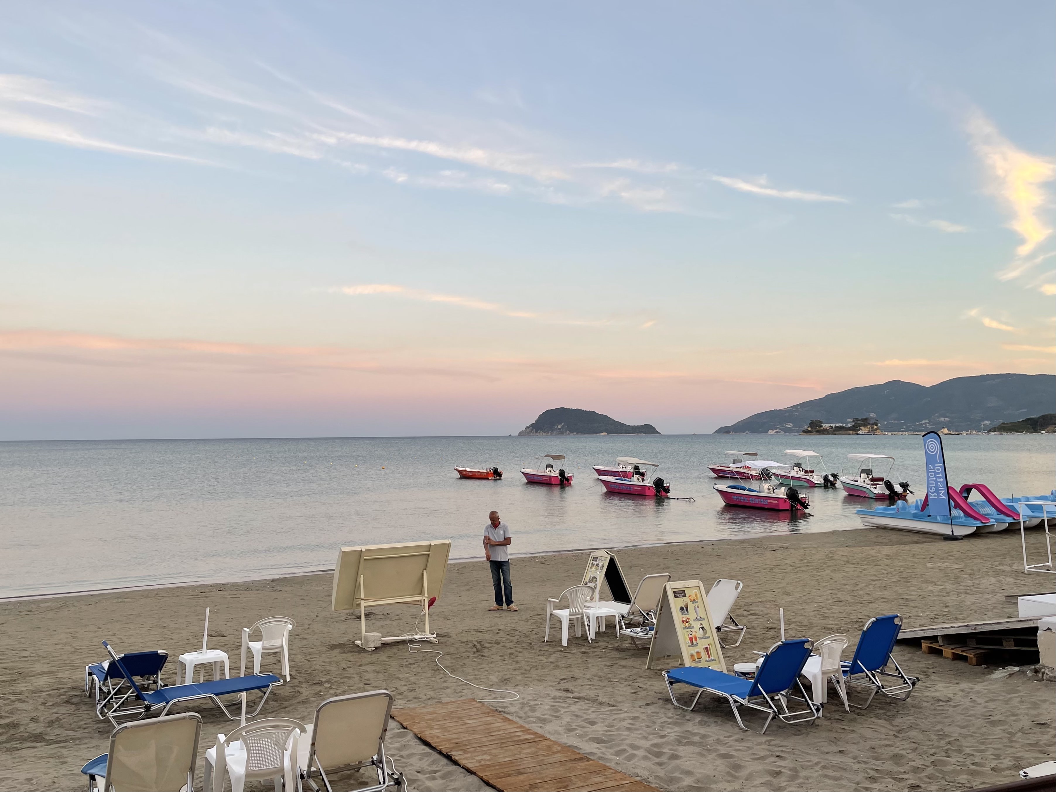 사과나 오렌지나 케익 한 조각을 챙겨서 곧 바로 해변이나 명소를 찾아나선다. 일광욕이나 해수욕을 하면서 간식이나 음료로 약간의 허기를 달랜다. 주로 아내는 커피로, 난 맥주를 선택한다. 자킨토스 섬 내에서 커피와 맥주 가격은 같거나 별반 차이가 없다. 커피 한 잔 값은 부가가치세 13%를 포함해 2.5유로이고 맥주 500cc는 부가가치세 24%를 포함해 2.5-3.5유로다.