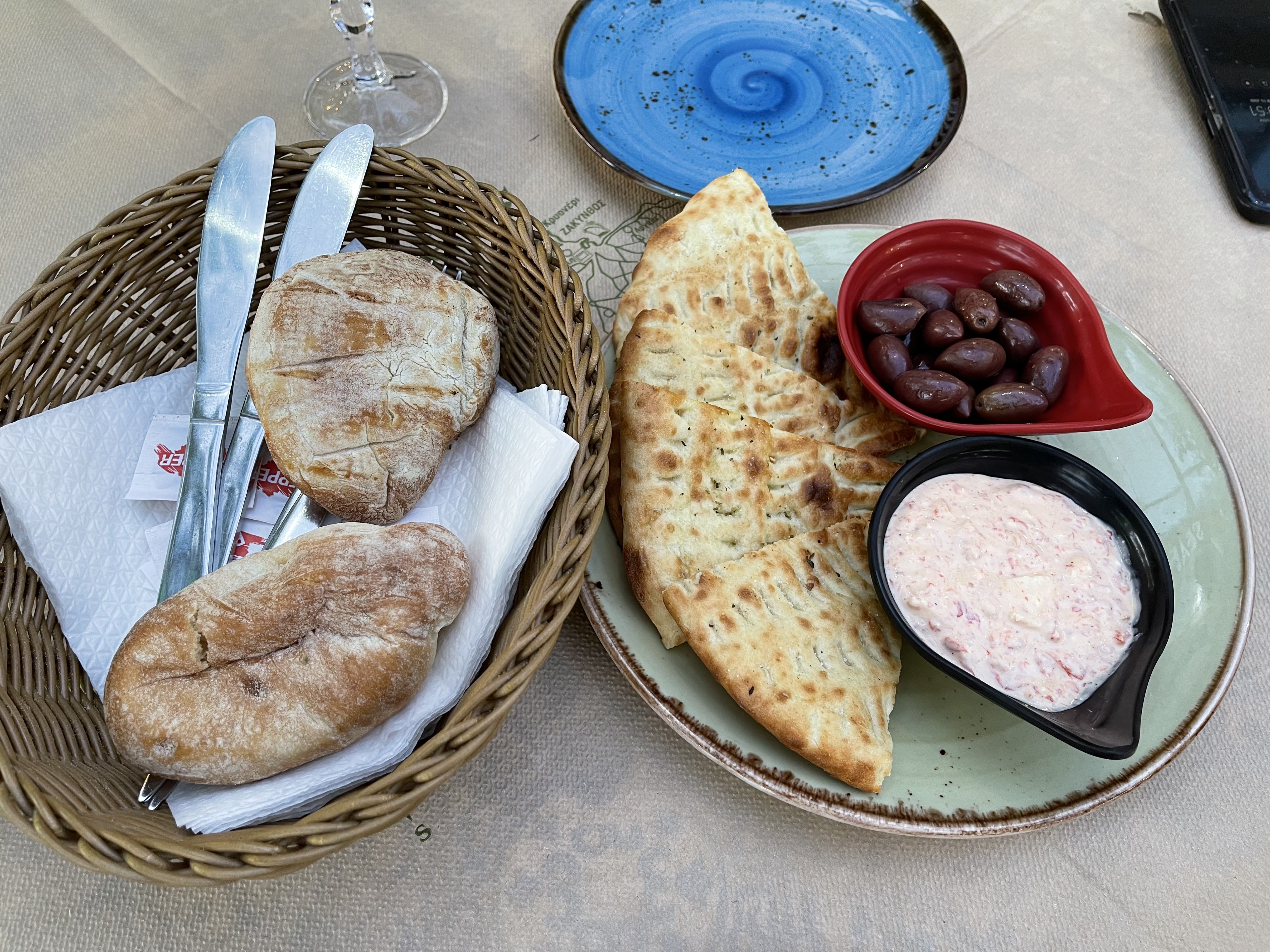 주요리를 주문한 후 대부분 식당은 빵과 올리브유로 가져다 준다. 순간 이것도 추가로 돈을 내는 것인가라는 의심이 일어난다. 왜냐하면 발트 3국은 빵도 따로 주문해야 하고 심지어 버터까지 값을 치러야 하는 식당들이 많기 때문이다.