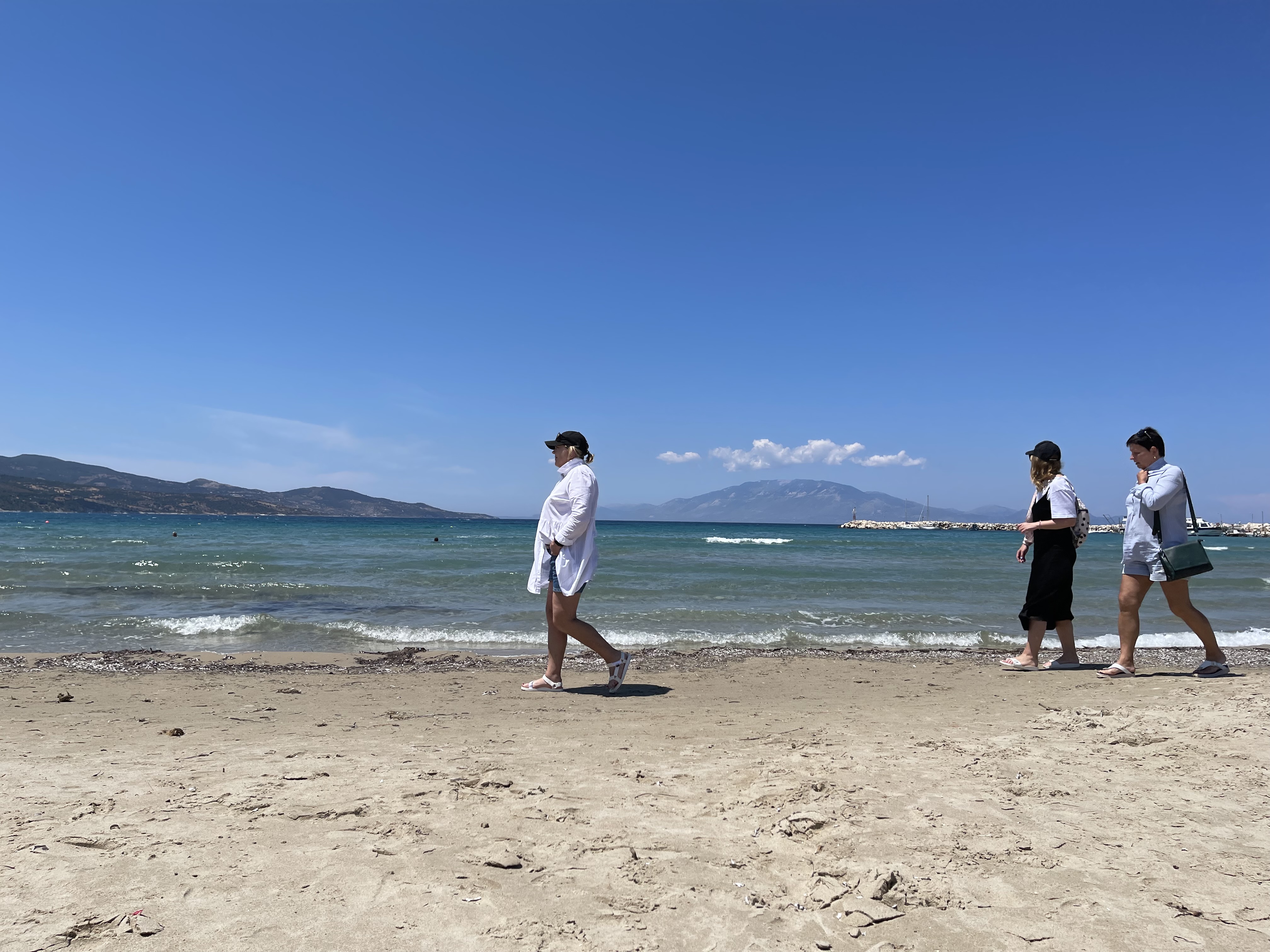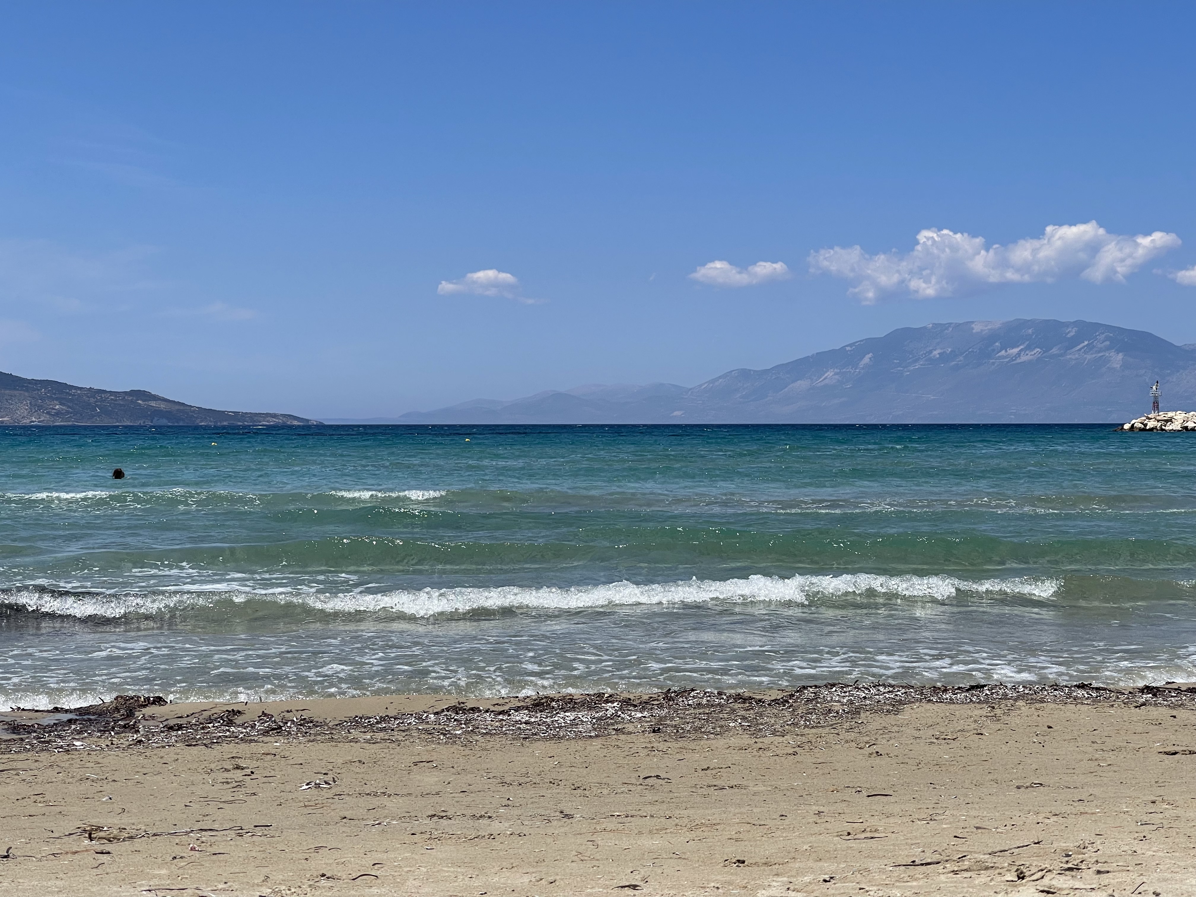 파란 하늘과 바다, 하얀 구름과 파도가 그리스 국기 색깔을 떠올리게 한다.