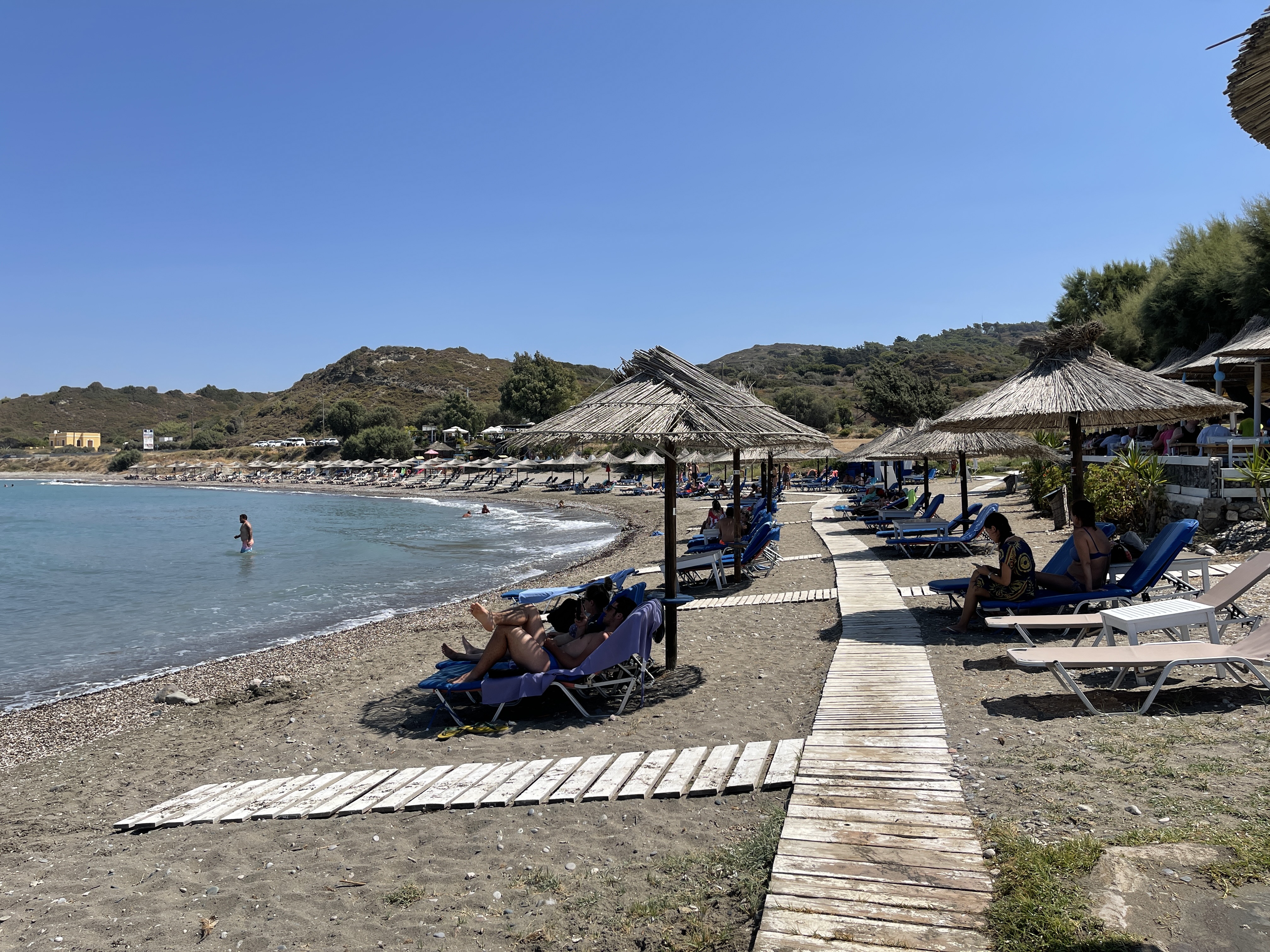 해변은 조약돌로 이루어져 있다. 물신발이 필요한 곳이다. 해변 수심은 얕다.