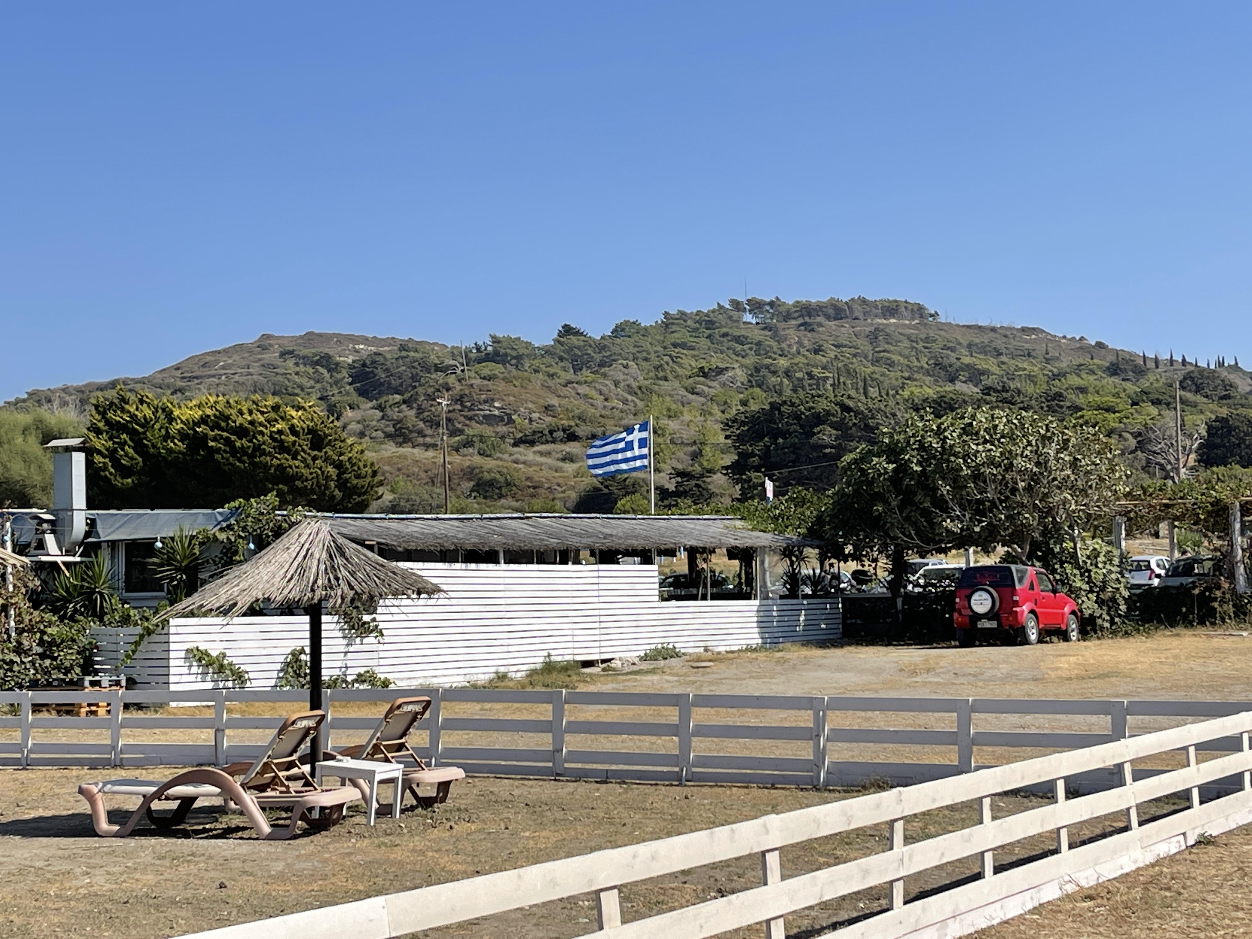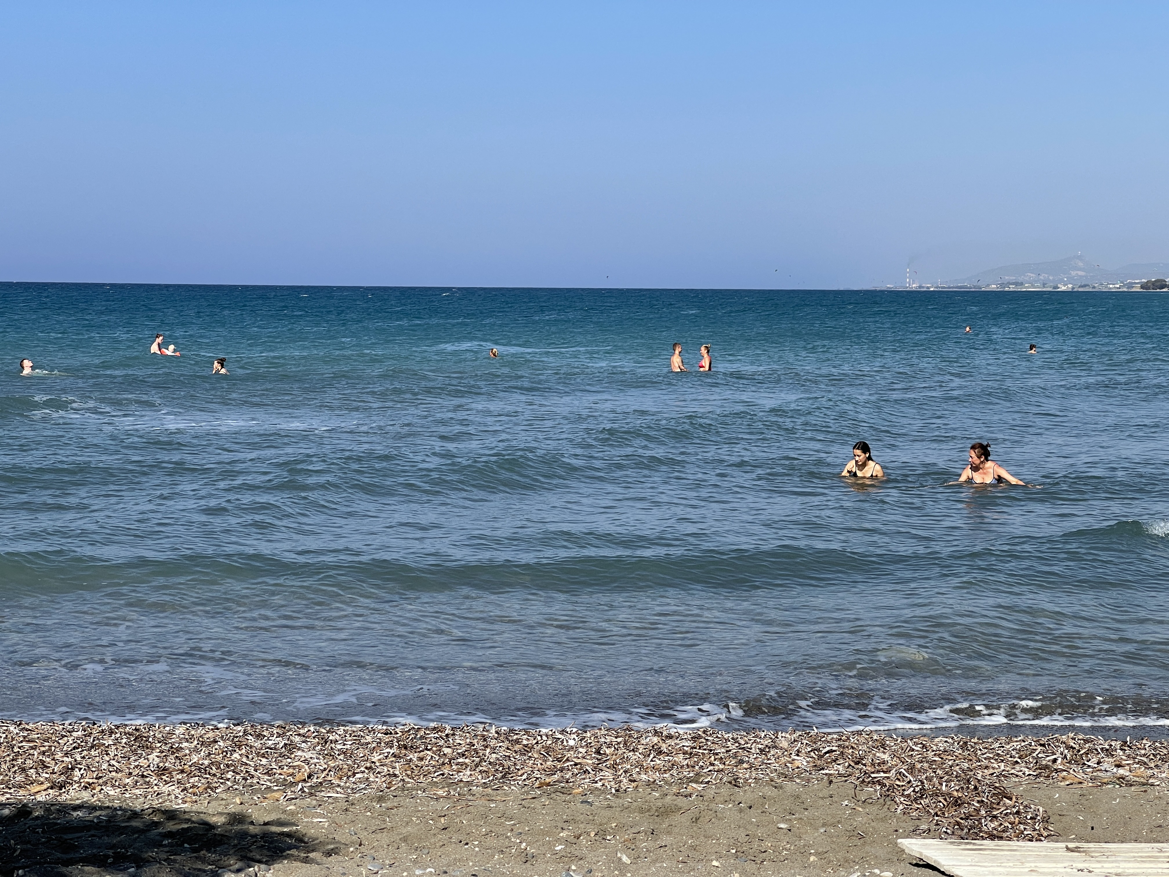 고대도시에서 나와서 이곳에서는 전혀 보이지 않는 해수욕장으로 이동한다. 바로 산 아래 해변에 위치한다. 무료주차라는 안내판이 걸려있는 한 식당 주차장으로 들어간다. 무료주차는 곧 가격더함을 의미할 수도 있겠다.