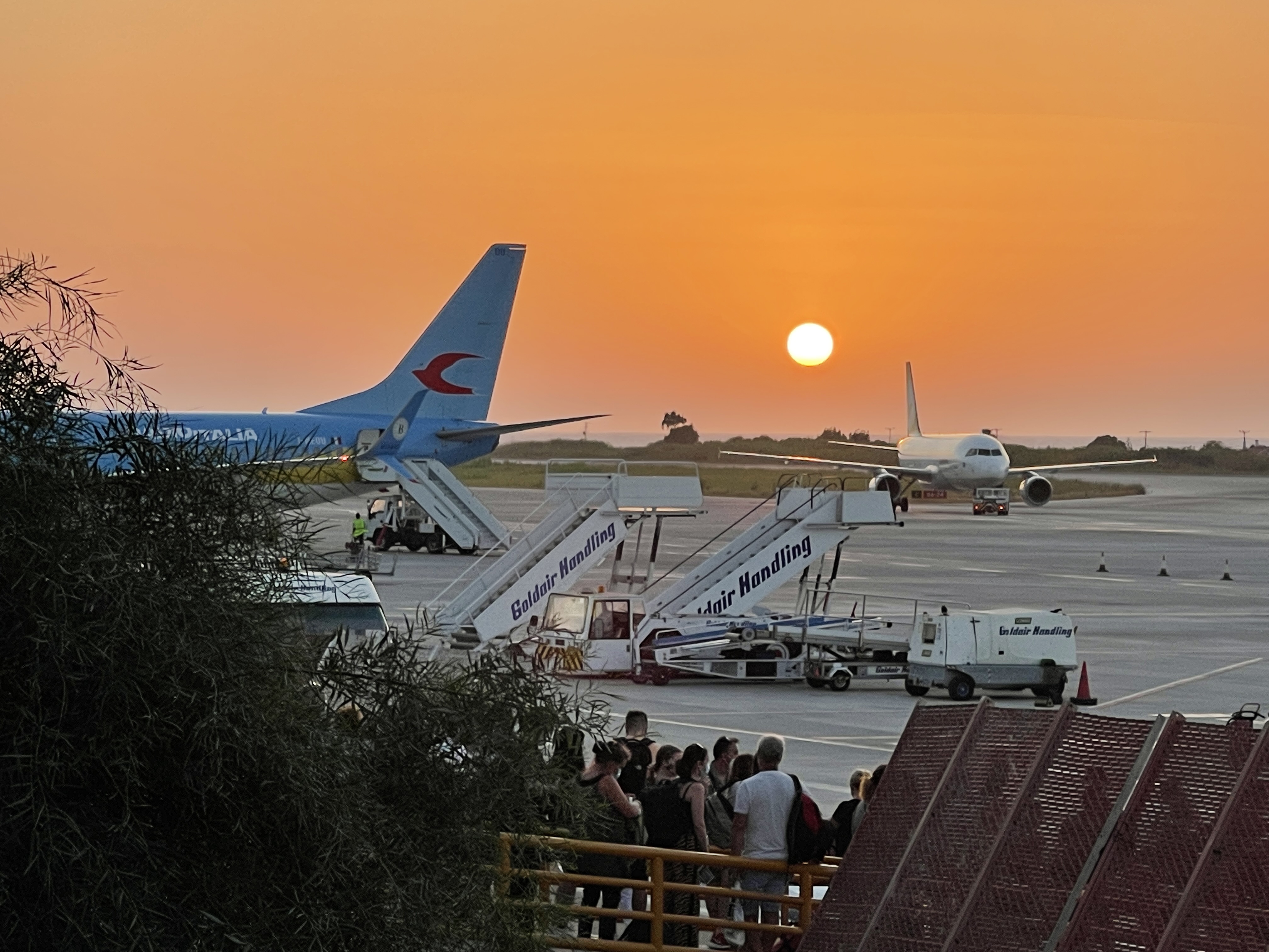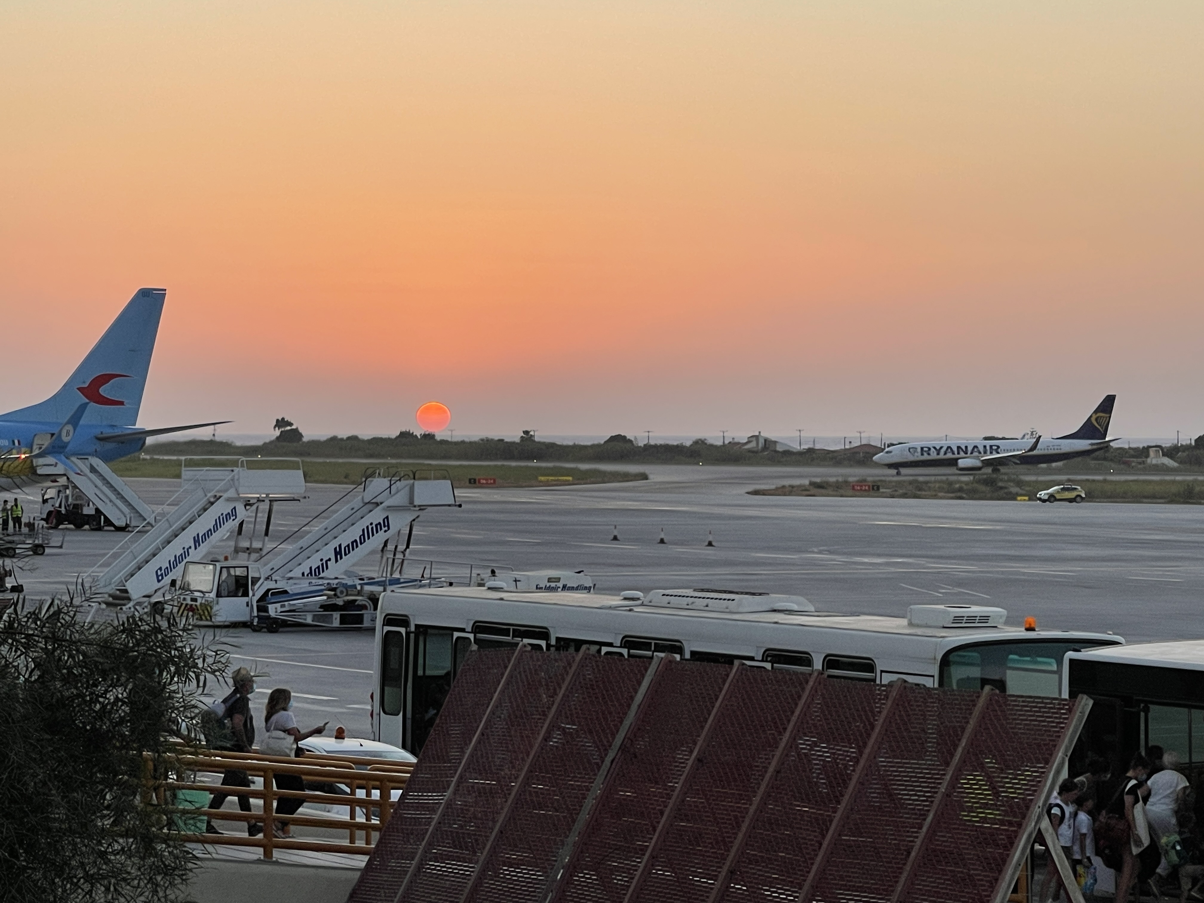 태양이 바다에 닿자마자 우리가 타고 갈 Ryanair가 활주로에서 서서히 착륙장으로 들어온다. 이렇게 해서 백신여권으로 올해 두 번째 그리스 여행을 마치고 빌뉴스 집으로 돌아간다.