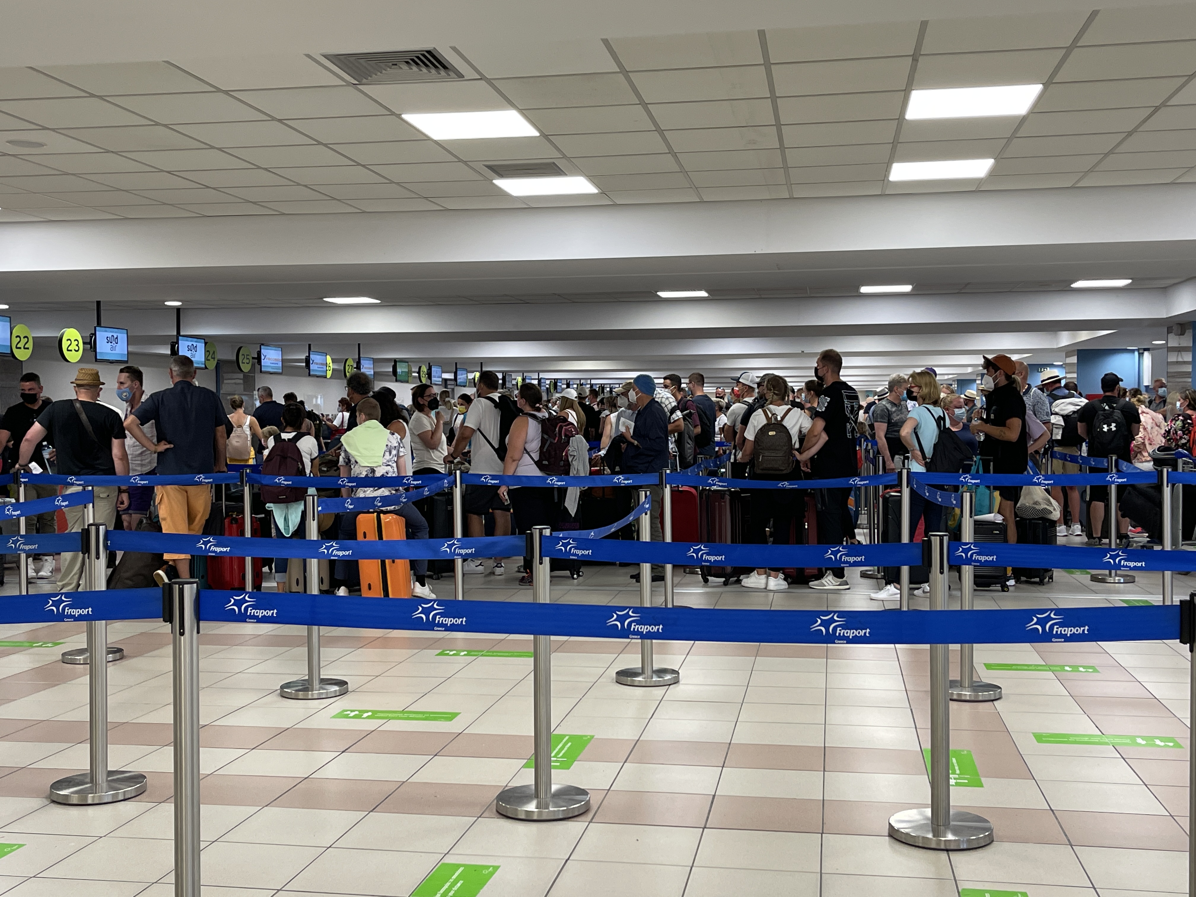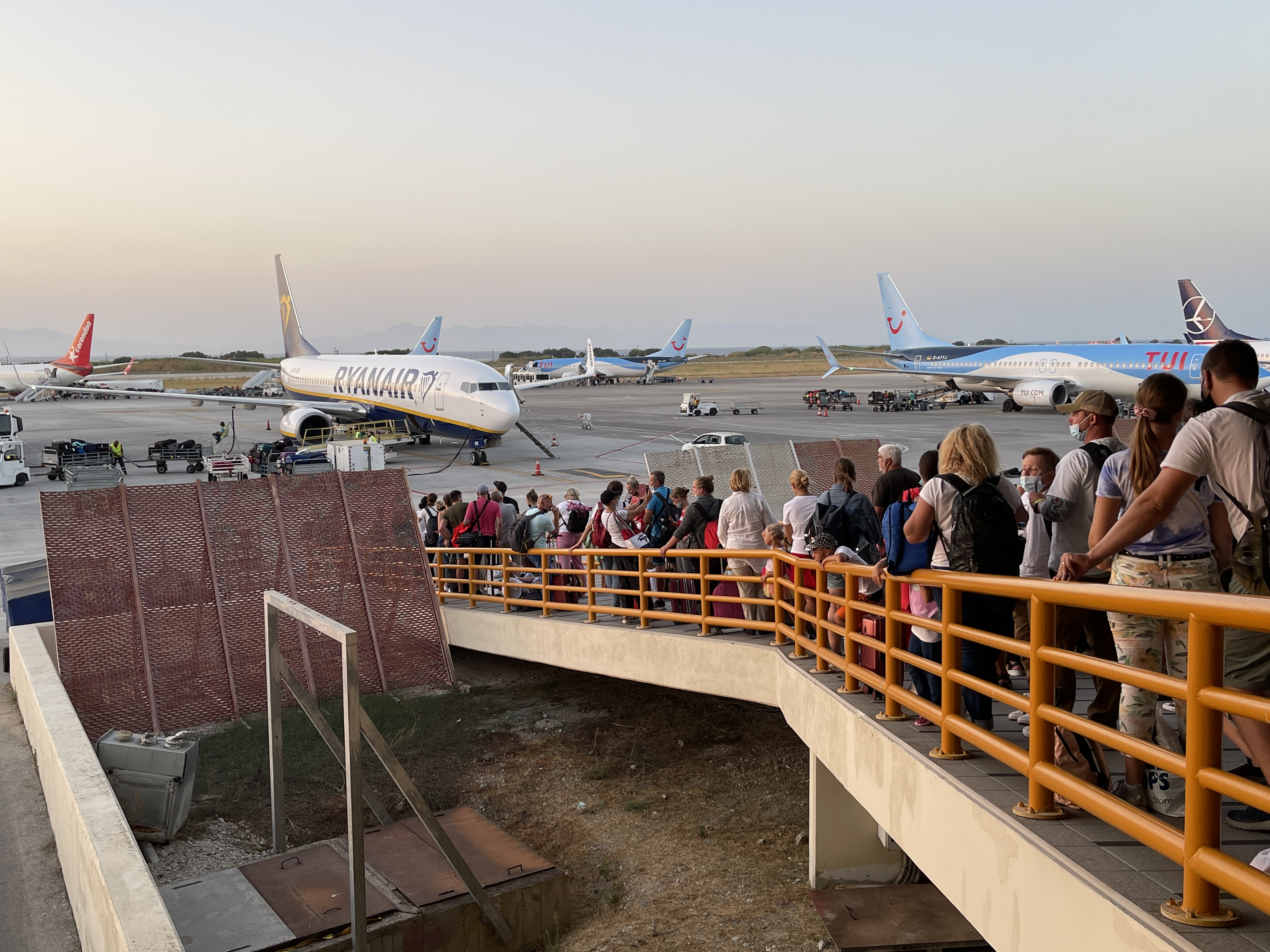 8월 하순 그리스 로도스 여행을 마치고 돌아가는 사람들이 출국장을 가득 메우고 있다.