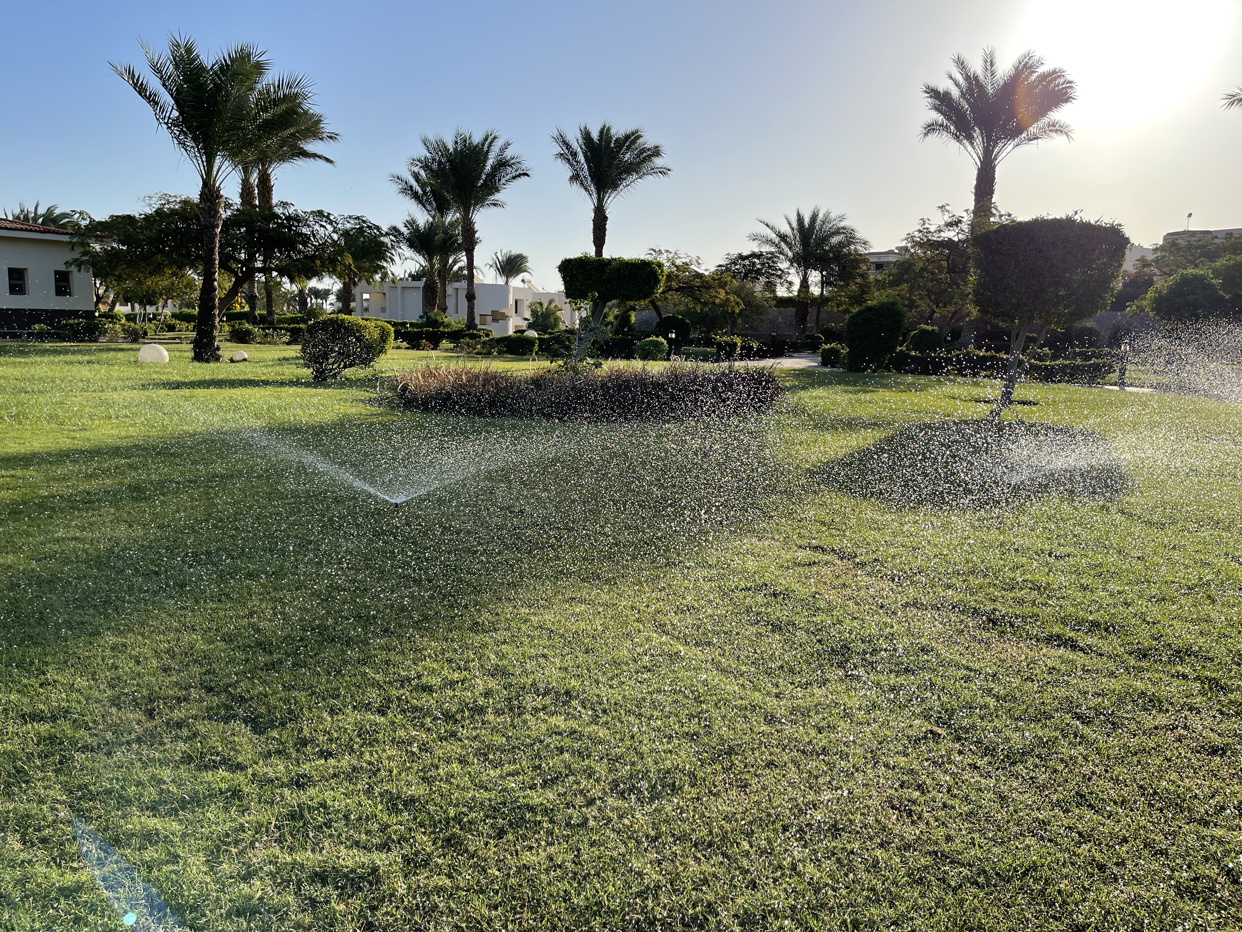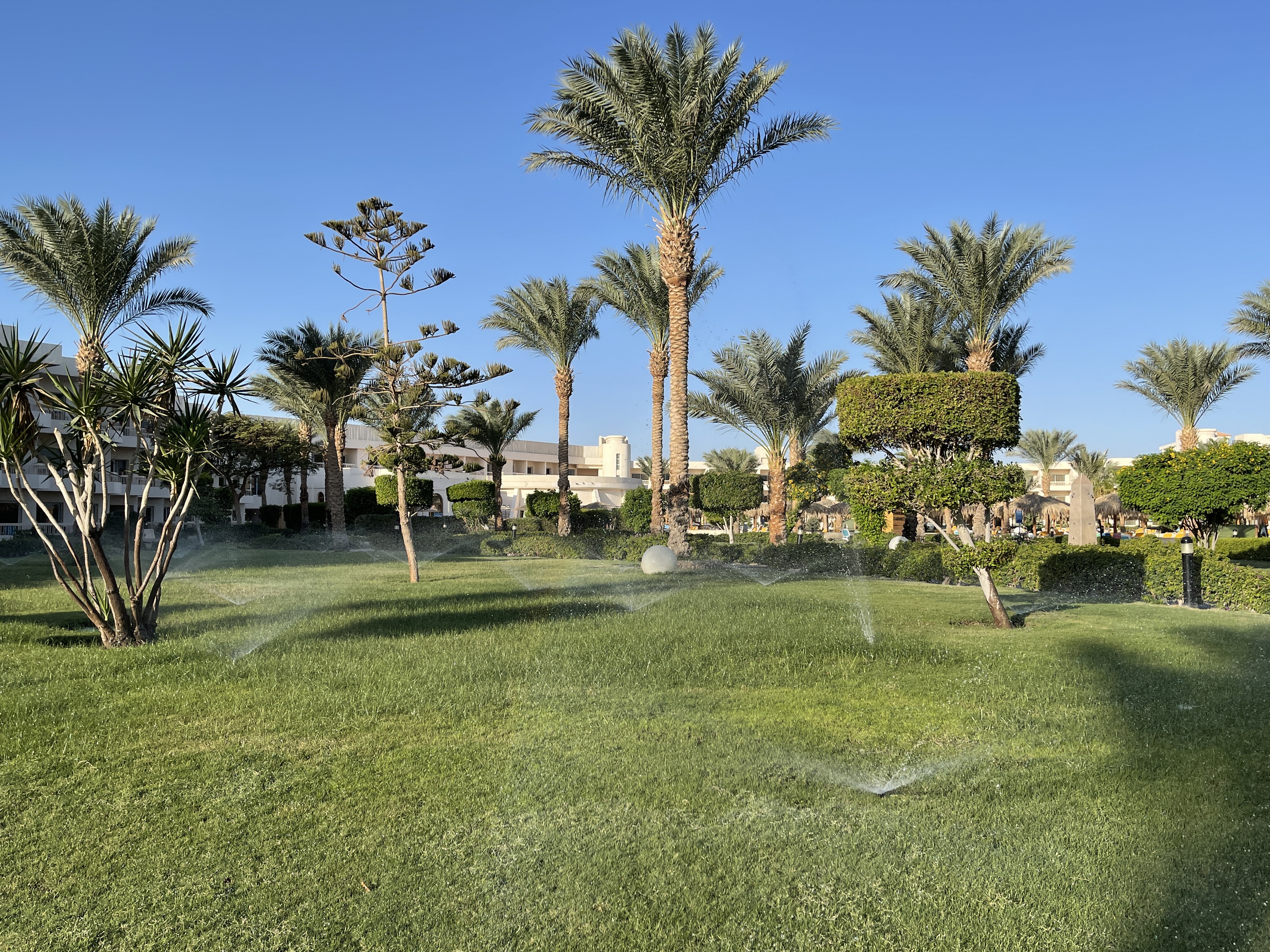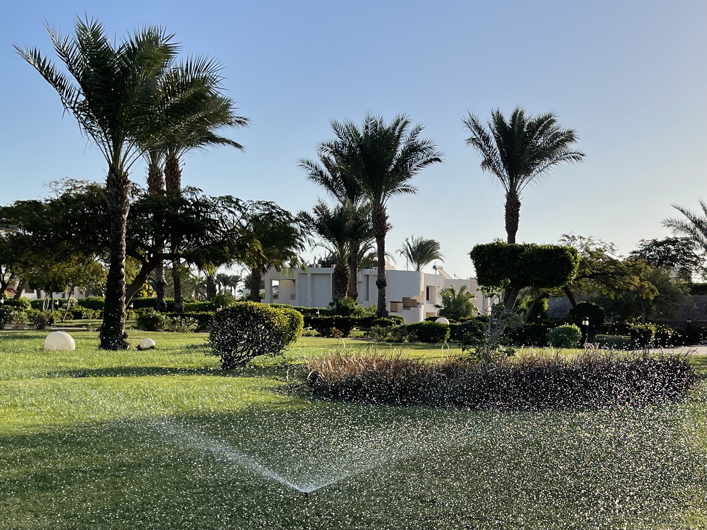 홍해에서 떠오르는 해를 조망한 후에 돌아오는 길에 여전히 물을 주고 있다. 다행히 자동화되어 있어 큰 수고로움은 들지 않을 듯하다.