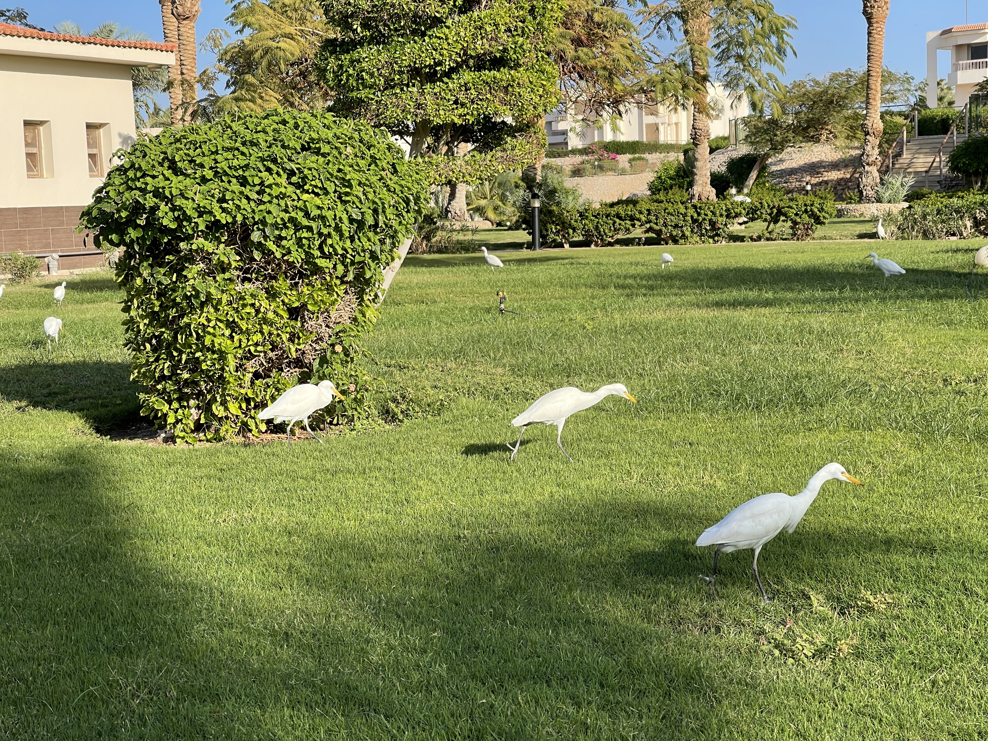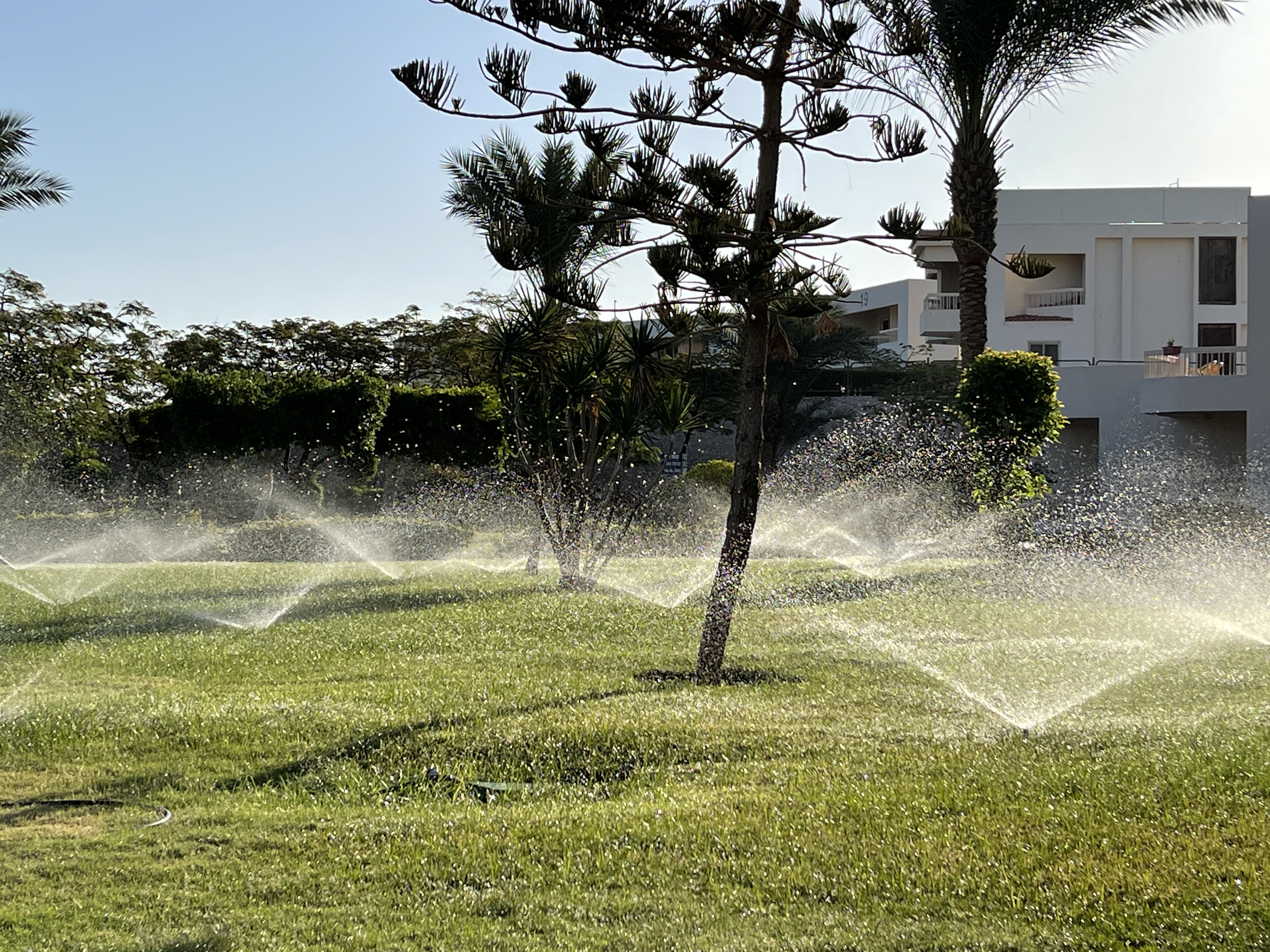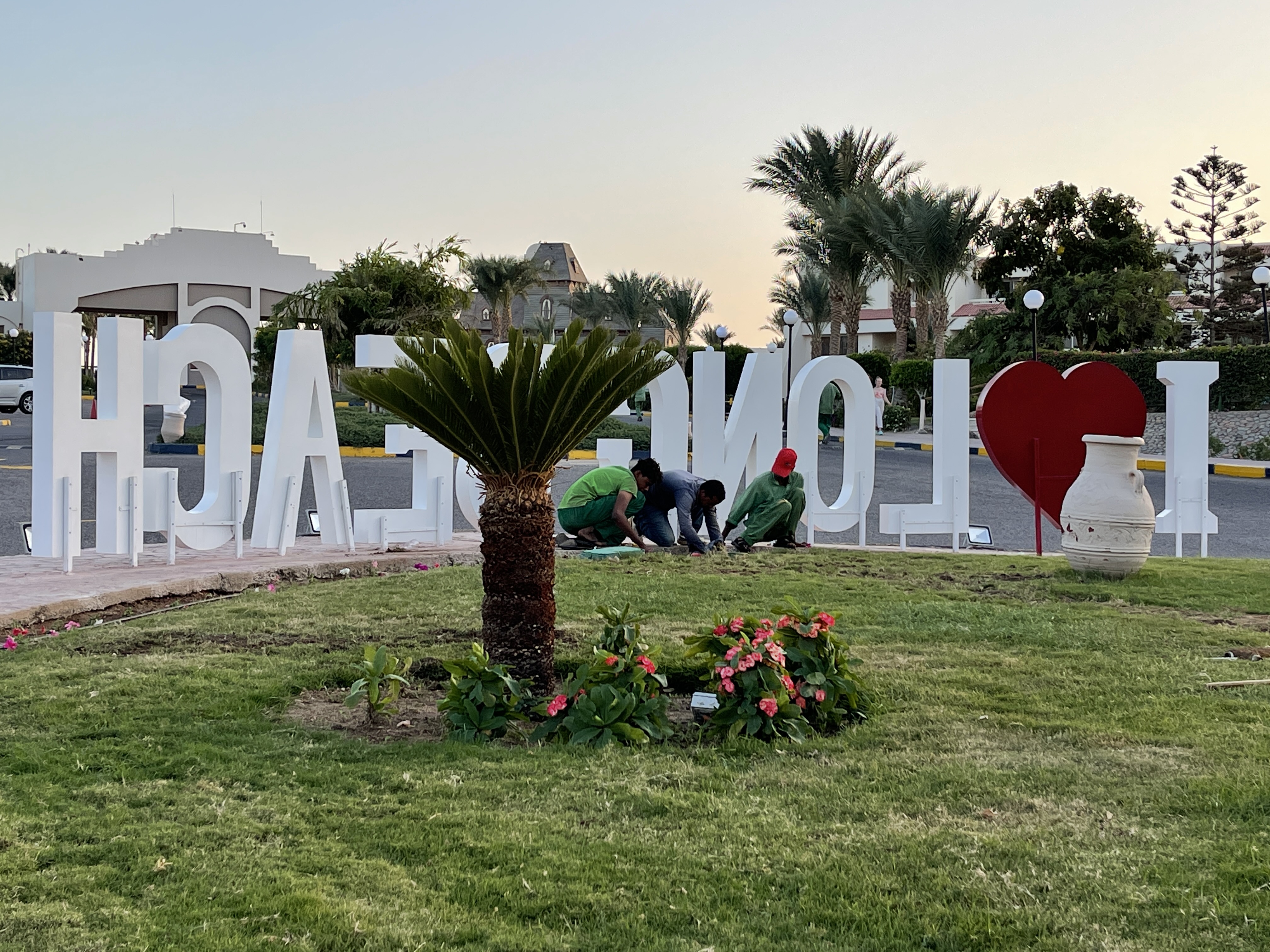 홍해에서 떠오르는 해를 조망한 후에 돌아오는 길에 여전히 물을 주고 있다. 다행히 자동화되어 있어 큰 수고로움은 들지 않을 듯하다.