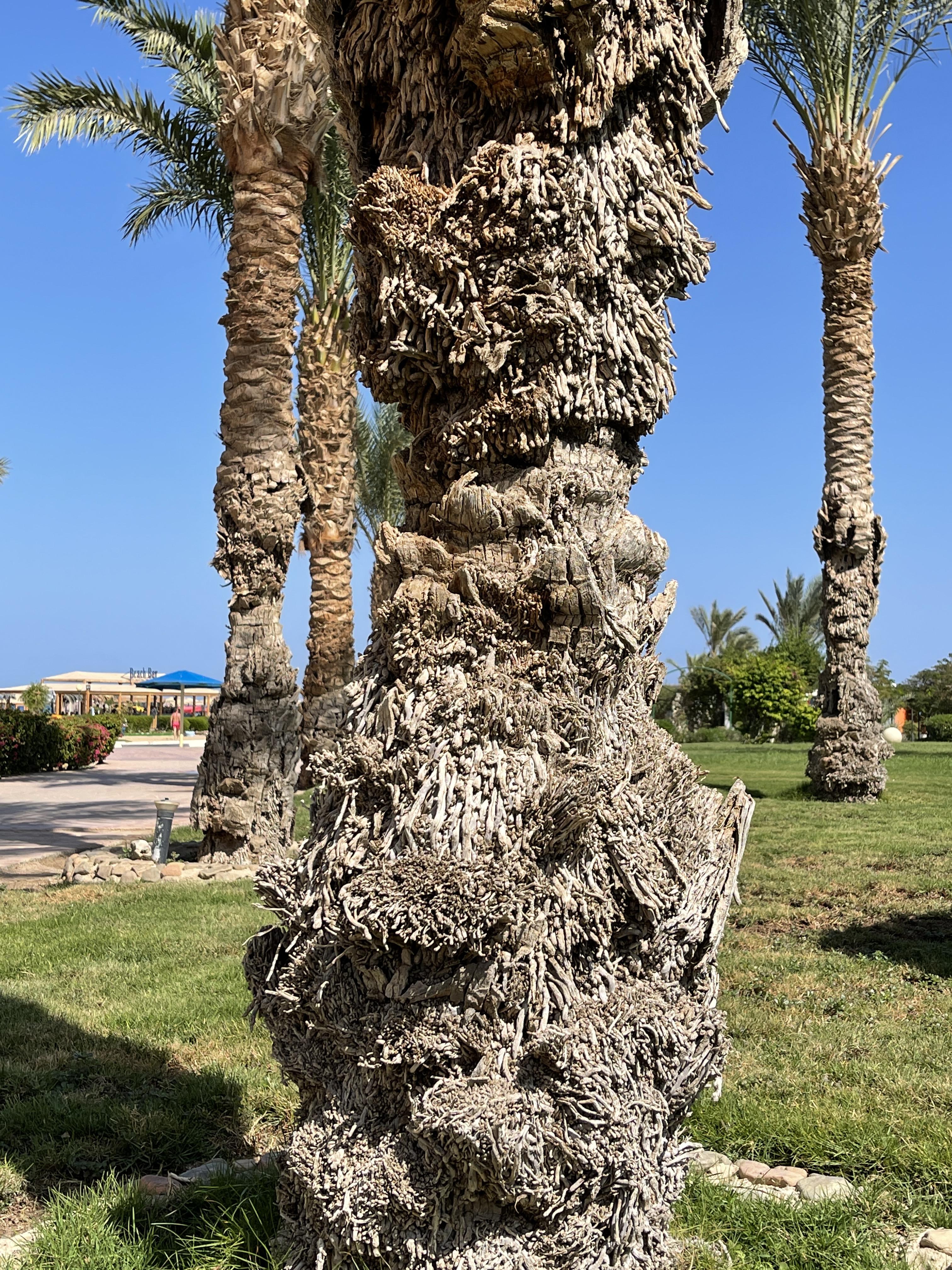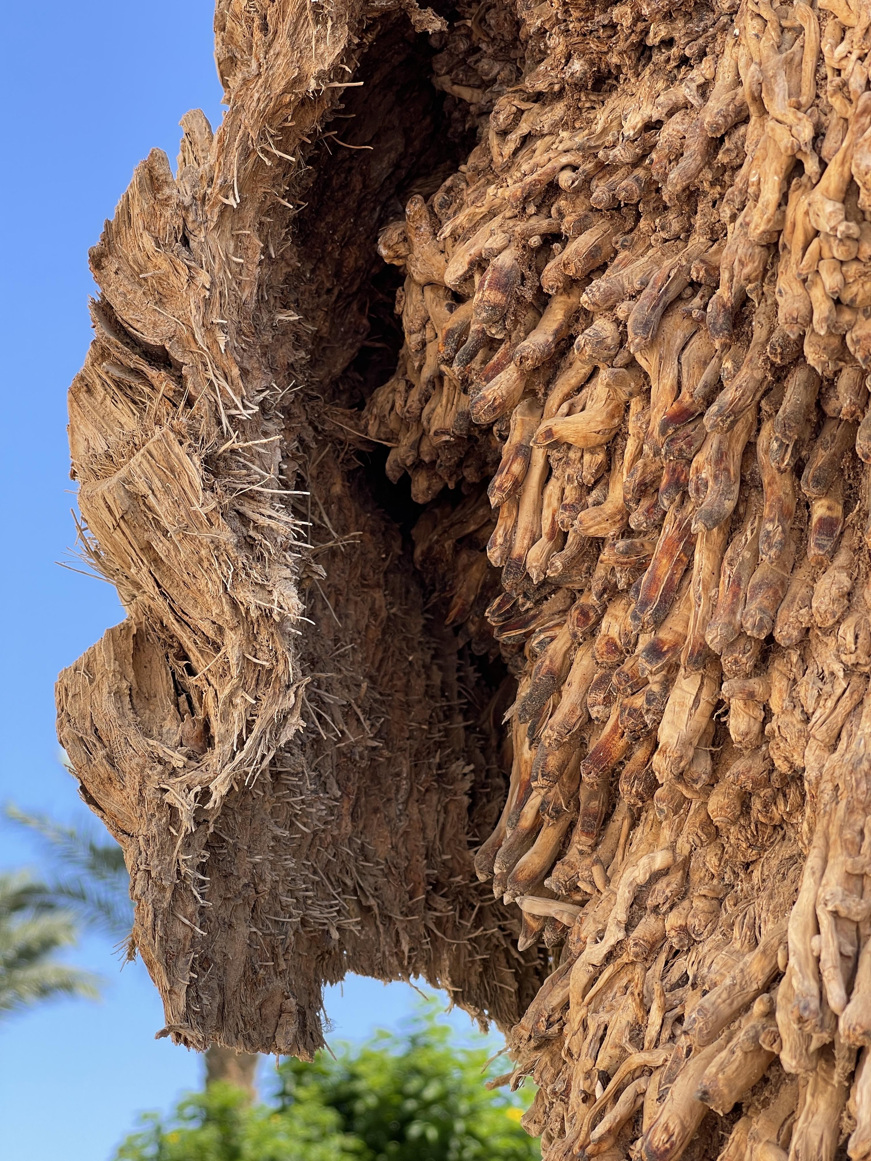 이번에 대추야자수 껍질 속을 처음 본다. 대추야자 열매가 주렁주렁 열려있듯이 껍질이 한 꺼풀 벗겨진 속에는 촘촘히 돌기된 것들로 꽉 차 있다. 마치 얽히고 뒤섞인 투명한 화분 속 서양란의 뿌리를 연상시킨다.