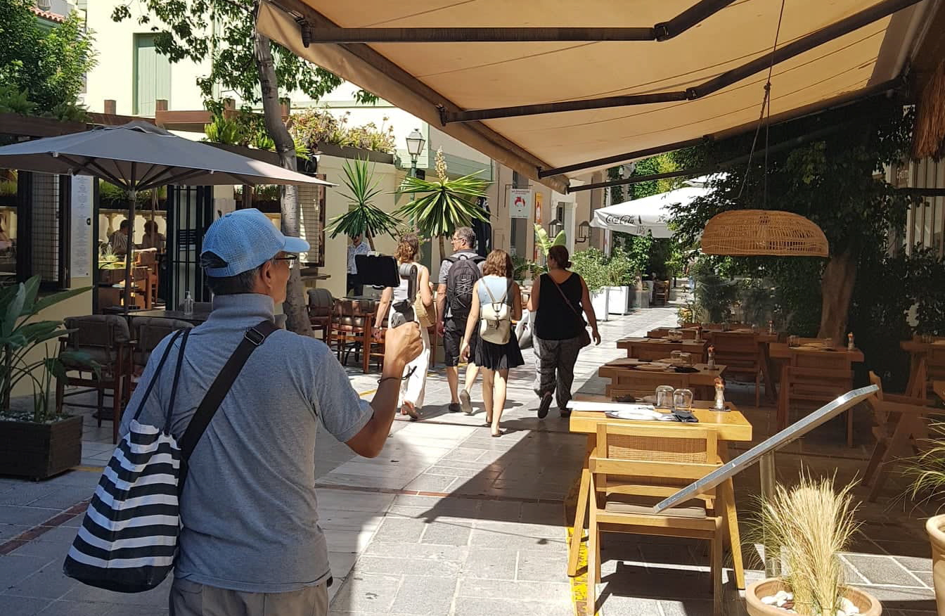 헤라클리온 구시가지 거리 모습을 4K 도보 영상에 담고 있는 내 모습을 몰래찍사 아내가 기록으로 남긴다.