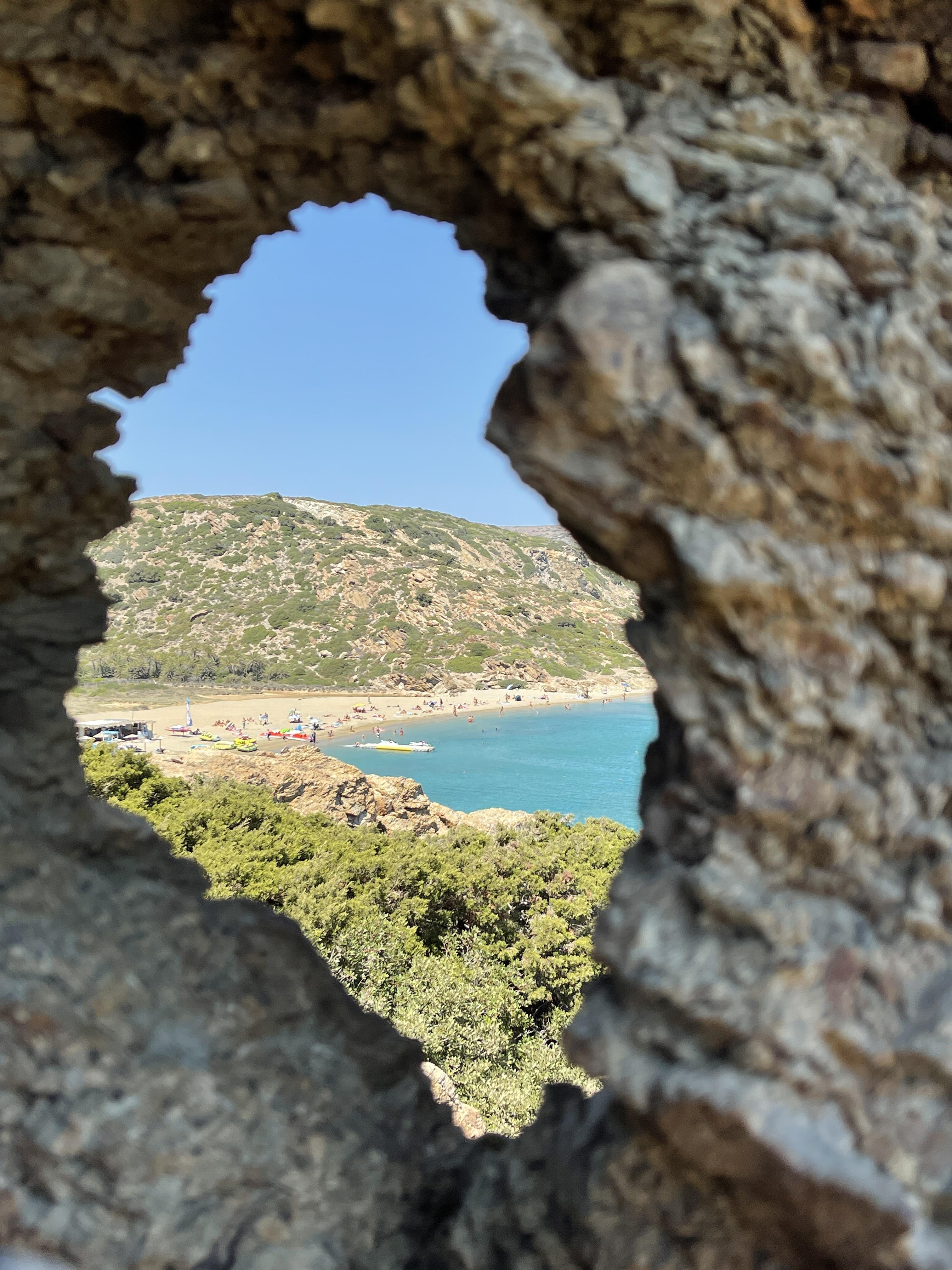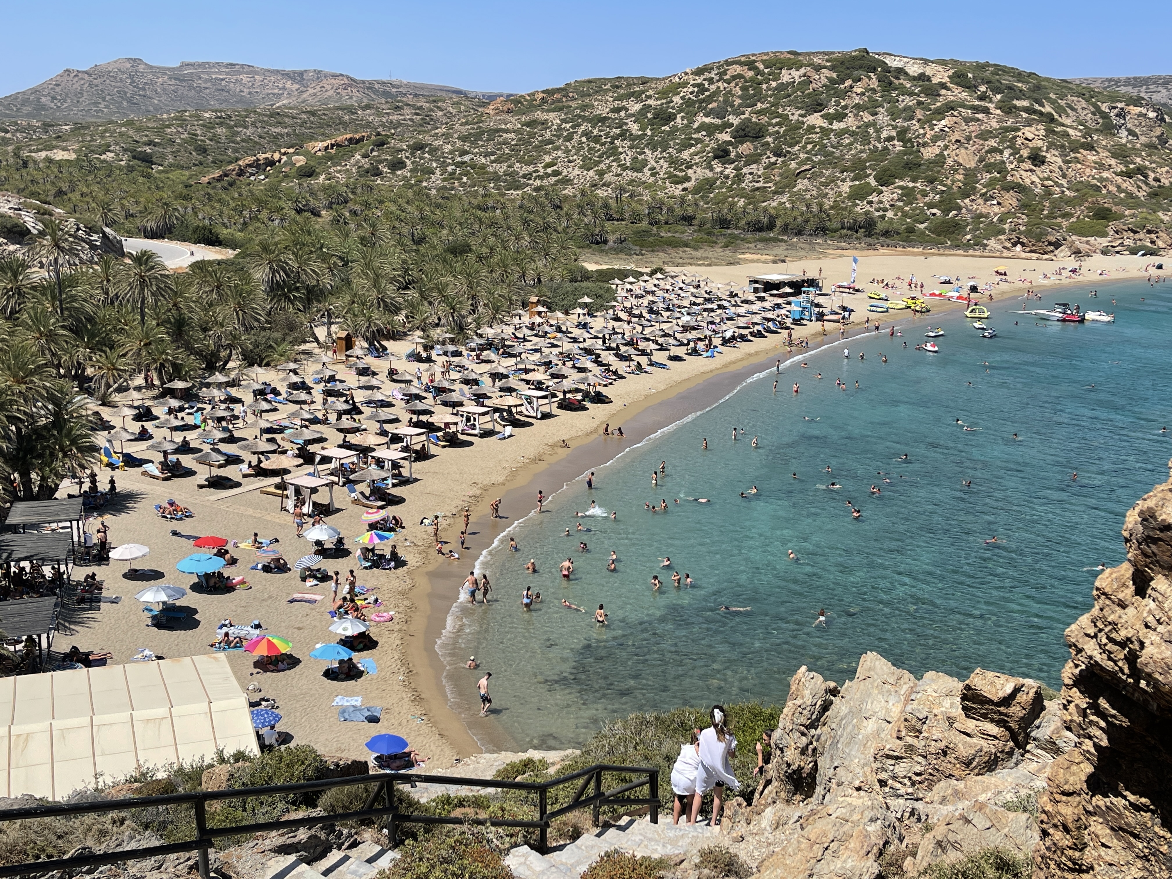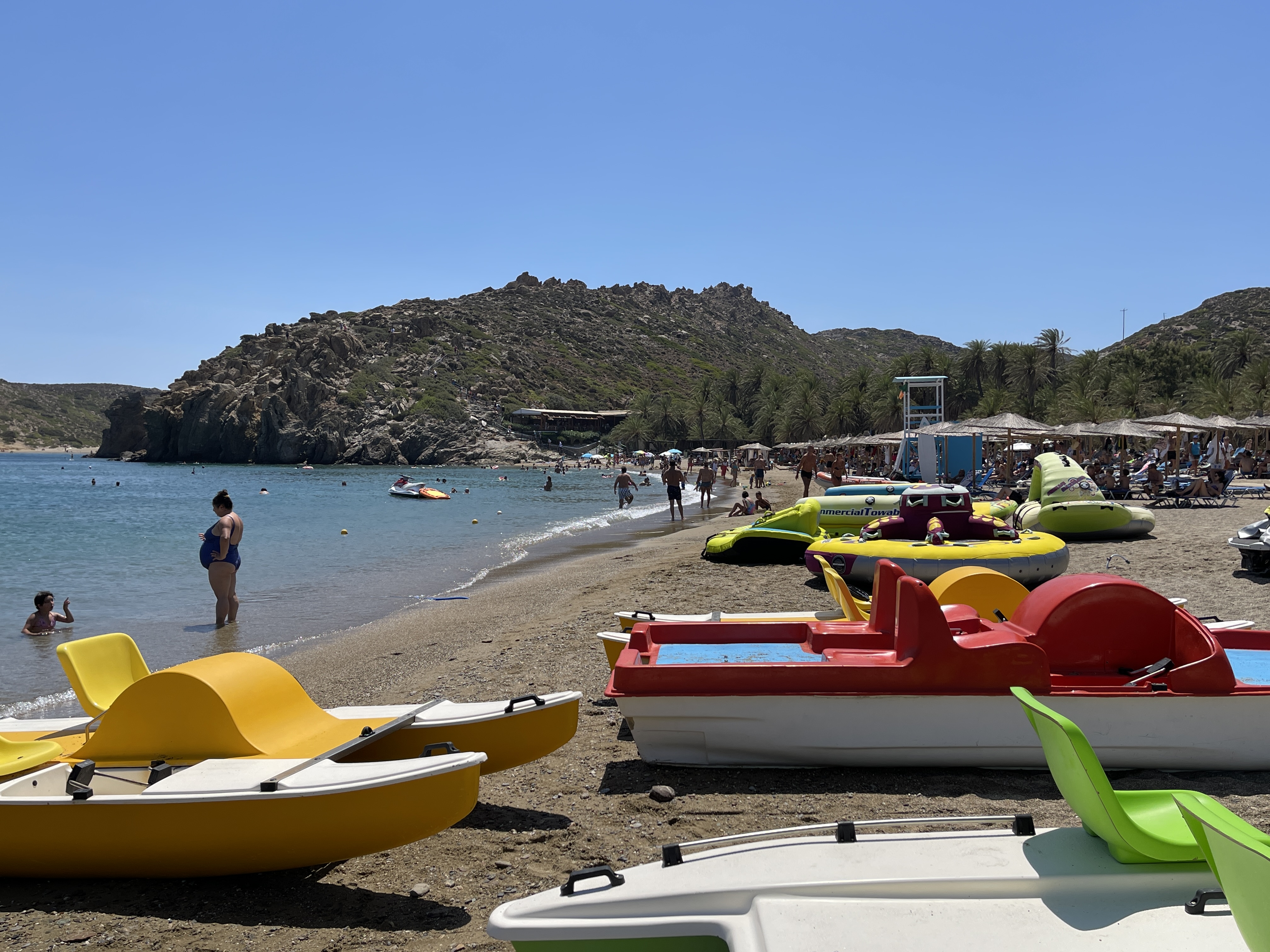 첫날 목적지는 크레타 동쪽 끝에 위치한 바이 해수욕장(Vai Beach)다. 구글 지도상 걸는 139km다. 소요시간은 2시간 20분이다. 리투아니아에서는 1시간 10분 걸리는 거리다. 산악도로가 굽이굽이 이어지고 있음이 쉽게 짐작된다. 이날 이동 거리의 딱 반인 곳(Pachia Ammos Beach Παραλία Παχιά Άμμος)에서 오전 커피를 마신다.