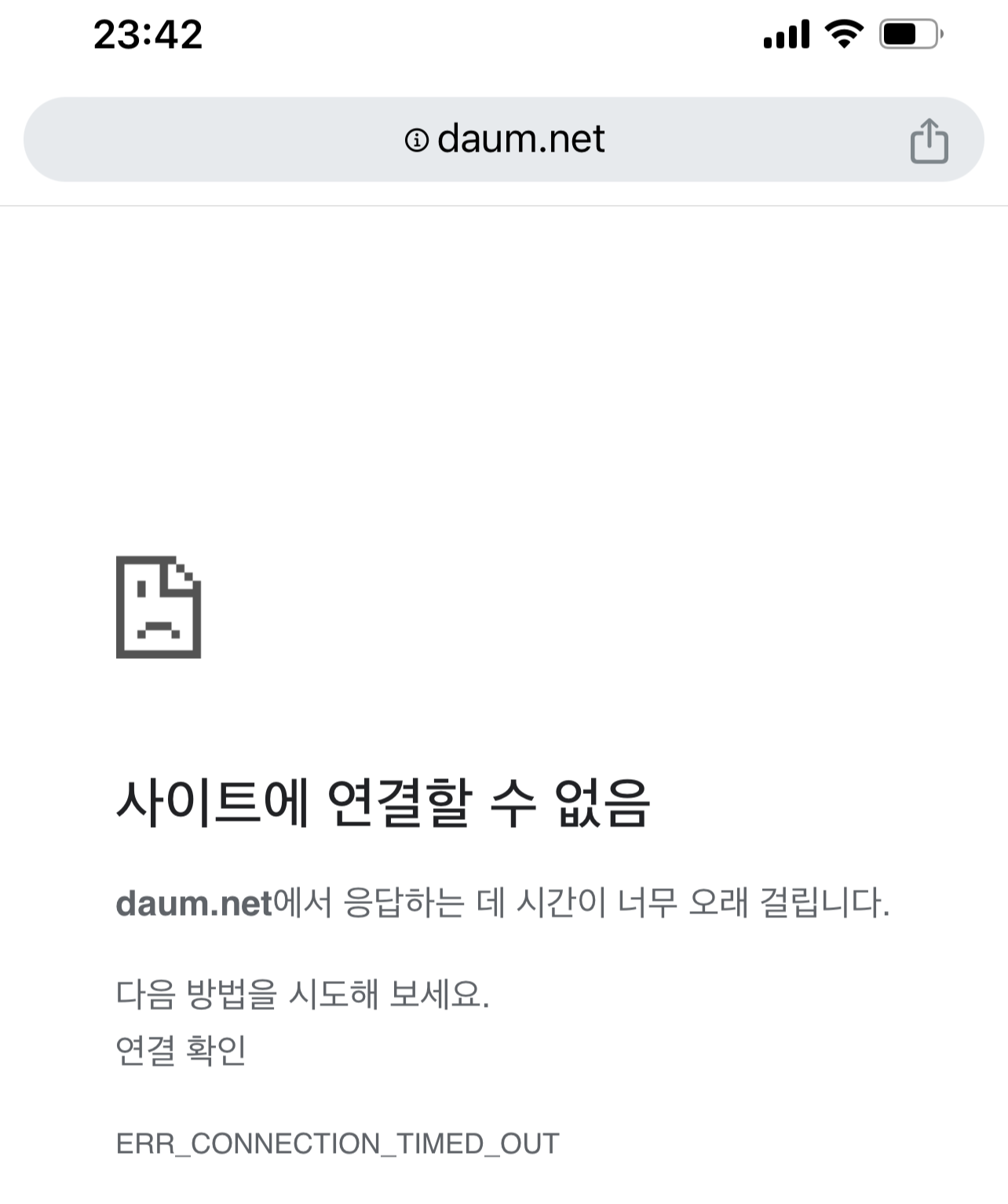 자주 이용하는 다음이나 네이버에 연결할 수도 없고 페이스북, 유튜브 심지어 카카오톡도 사용할 수가 없다.