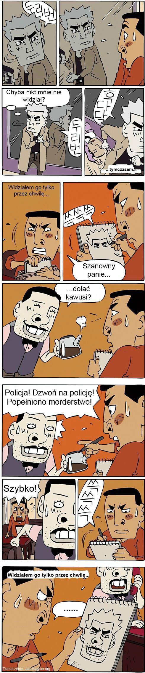 평소 즐겨찾는 폴란드 한 웹사이트에서 만화가 올라와 있었다. 폴란드어로 된 만화에 "퓩, 두리번, 쓱쓱쓱, 부우웅......' 등 한글이 심심찮게 보였다. 좀 더 살펴보니 양영순의 "아색기가" 만화였다.