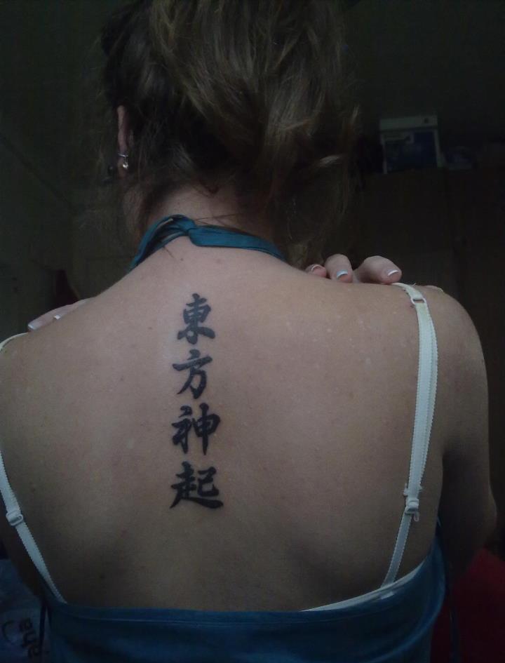 최근 한 회원의 사진모음에서 눈길을 확 끄는 사진을 보게 되었다. 등에 SM 엔터테인먼트에 소속되어 있는 댄스 음악 그룹인 동방신기의 한자 東方神起가 문신으로 새겨져 있다.