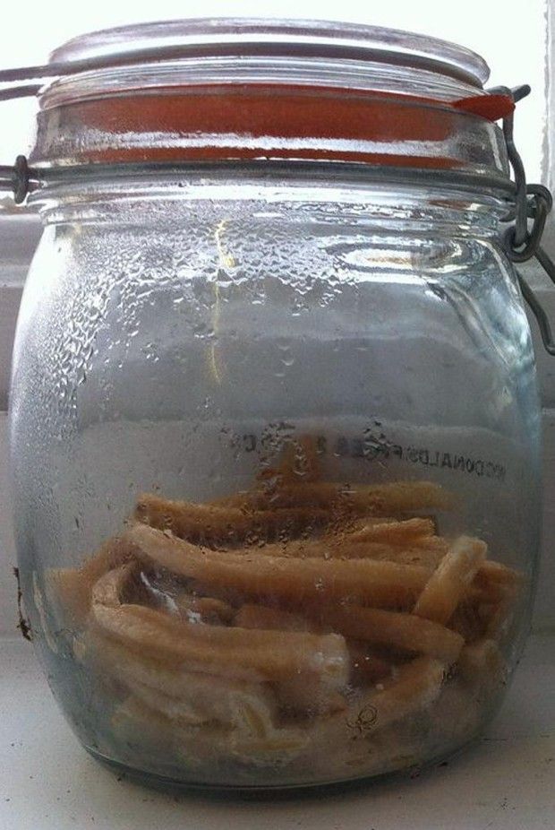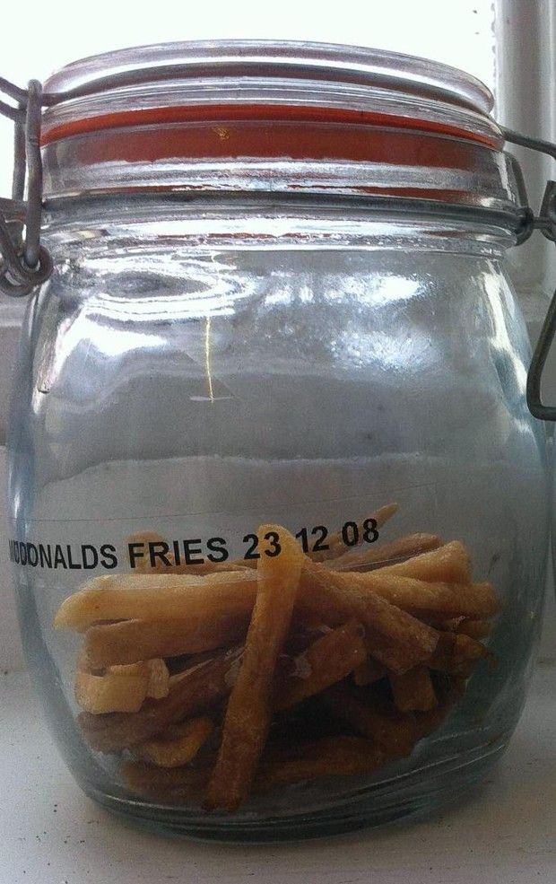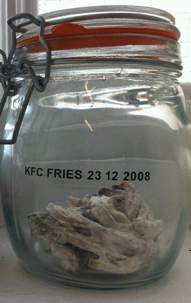 폴란드 웹사이트 조몬스터에 재미난 사진이 올라와 있다. 맥도날드 감자튀김과 케이에프씨 감자튀김의 차이를 극명하게 보여주고 있다. 2008년 12월 23일 두 회사의 감자튀김을 구입해 각각의 유리병에 3년 동안 보관한 감자튀김의 모습이 공개되었다.