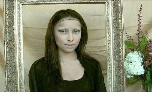 위 사진 속 얼굴을 화장함으로써 어떤 사람으로 변할 수 있는 지를 아래에서 볼 수 있다.