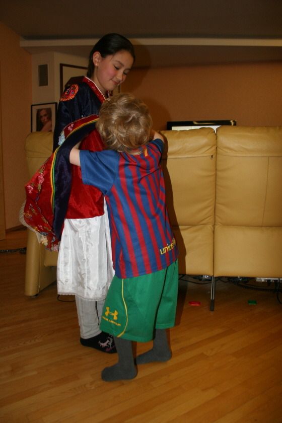 한복을 처음 본 유럽 아이의 장난스런 반응