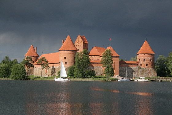 ▲ 트라가이 성 앞에는 해가 쨍쨍, 성 뒤에는 비를 쏟고 있는 먹구름
