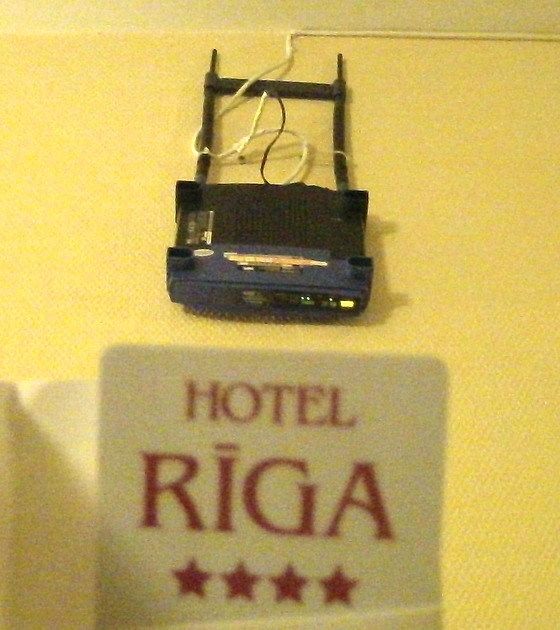방으로 돌아와 당연히 로그인없이 무선인터넷 접속이 되기를 기대하면서 인터넷 접속을 시도해보았다. 아쉽게도 불가능했다. 이어 호텔 안내소로 가서 문의하고 돌아오는 길에 복도에 걸려 있는 인터넷 모뎀이 눈에 확 들어왔다. (* 후기: 정확한 표현은 모뎀이 아니라 공유기입니다. 하지만 일반인들은 모뎀과 공유기가 광의적으로 모뎀으로 인식할 것 같아 모뎀이란 표현을 사용했습니다.)