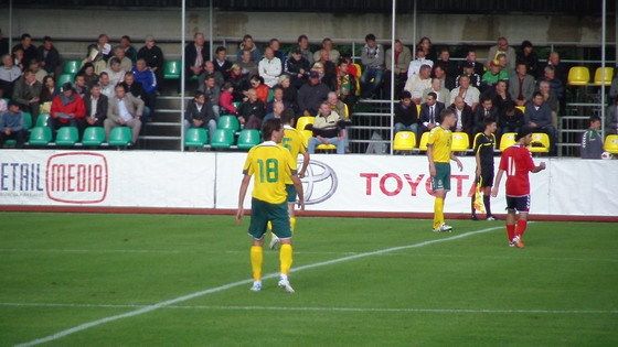 아내와 둘이서 카우나스 축구 경기장으로 향했다. 다행히 비는 오지 않았다. 경기 시작 10분 후 경기장에 도착했다. 친선 경기이고 또한 동시에 농구 경기가 열려서 그런지 관중은 그렇게 많지가 않았다.