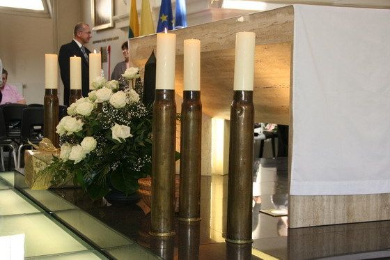 가까이에서 보니 바로 초를 받치고 있는 것이 바로 포탄이었다. 물론 포탄은 더 이상 쓸 수가 없는 것이다. 그래도 성당에 왜 포탄으로 촛대를 만들었을까? 궁금증은 이 성당이 어디에 속해 있는가를 알면 쉽게 이해가 된다. 이 성당은 바로 리투아니아 군대 성당이다.