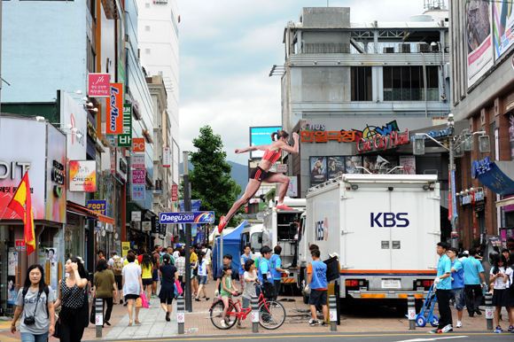 15min는 무가지 소식지로 리투아니아 젊은이들이 즐겨본다. 이 신문의 인터넷판(15min.lt)에 최근 대구 에 관한 많은 사진이 실렸다. 바로 대구에서 열린 세계육상선수권 대회 취재차 방문한 리투아니아인 사진기자가 찍었다. [photo: Alfredas Pliadis | image source link]