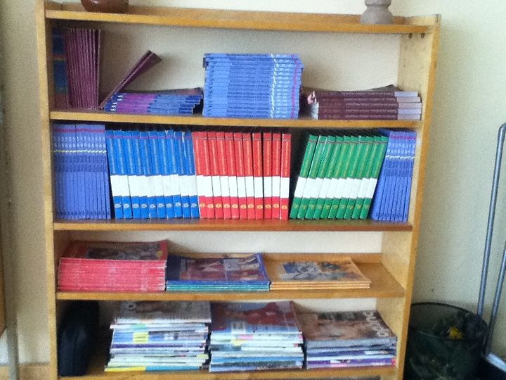 교실 앞에는 교과서가 잘 정돈되어 있었다.