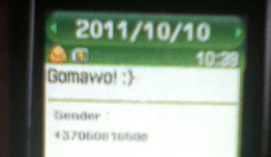 "Gomawo! :}" (고마워: 휴대전화에 한글 자판이 없어 이렇게 라틴글자로 쓴다.)일전에 학교 수업 중 휴대폰으로 인해 생긴 아내의 불편한 심기(관련글: 선생님도 수업시간에 휴대폰 꺼놓아야 할 판)를 떠올리면서 "휴대폰이 참으로 유용하네"라고 되새겨보았다.