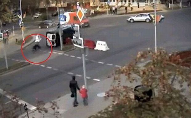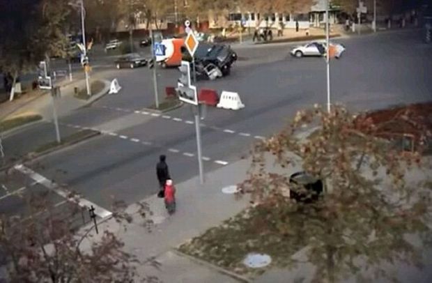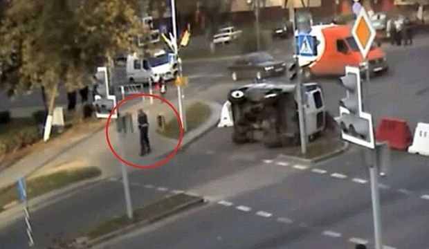 장소는 벨라루스 북서지방 인구 약 10만명의 도시인 말라졔츠나(Maladzyechna)이다. 사거리(오거리일 가능성도 있음)에서 일어난 일이다. 영상을 바라보는 시각에서 하얀색 승용차가 남동쪽에서 사거리로 들어온다. 이때 북동쪽에서 검은 경찰차도 사거리로 들어온다. 승용차가 경찰차를 살짝 들이받는다. 앞에서 오는 검은색 차가 경찰차의 시야를 가린 것으로 보인다.