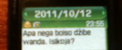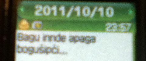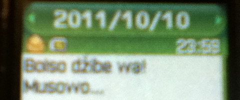 그런데 둘 다 휴대폰은 한글이 없다. 한국말을 소리나는 대로 리투아니아어 철자로 표기한다. 한 마디로 딸아이가 표현한 한국말은 엉성하고 부실하기 짝이 없다. 그래도 의사소통하는 데에는 전혀 문제가 없다. 몇 가지 쪽지를 공개한다. 밤에 아이팟으로 찍은 것이라 선명하지 않음에 양해를 구한다.