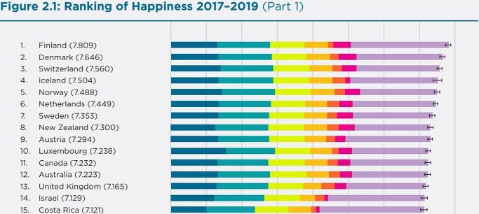 이 세계행복보고서에 따르면 북유럽과 서유럽의 대부분 국가들이 상위권에 올라와 있다.