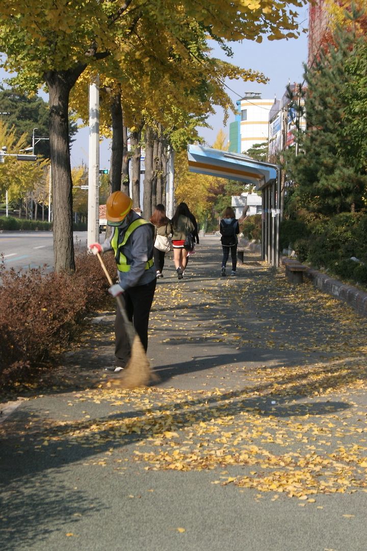 그런데 이곳 한국에 오니 낮에는 리투아니아 초여름 날씨 같다. 어제 익산 원광대학교와 경계를 이루는 거리를 걸어보았다. 노란 은행잎이 밑으로 떨어져 인도를 수놓고 있었다. 청소부 아저씨는 이 은행잎 낙엽을 쓸어다듬는데 여념이 없었다.