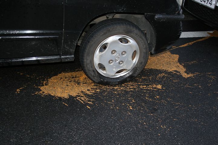 집앞 주차공간 확보를 위한 사람이 꾀를 낸 위장술로 여겨졌다. 이웃 사람들은 알고 있겠지만 인근에 있는 골프연습장을 찾는 낯선 사람들에게는 영락없이 구토물처럼 보일 것이다. 구토물에 자신의 깨끗한 차를 주차시키겠다는 사람은 없을 것이다.