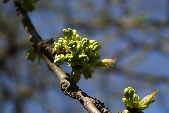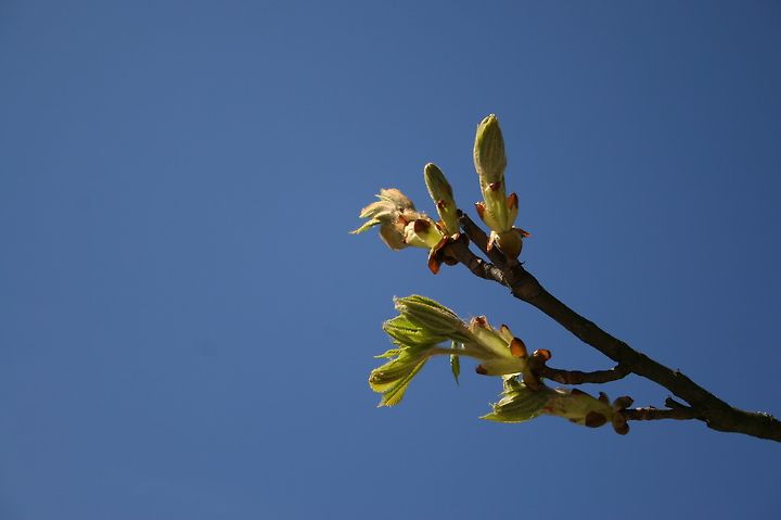 리투아니아를 찾아온 봄의 전경이다. 단풍나무, 칠엽나무에 새싹이 돋고, 벚꽃이 피고, 낙엽 사이로 자주색 청노루귀꽃이 피어오른다.