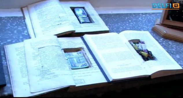 리투아니아 인터넷 포탈사이트 delfi.lt는 교도소를 방문취재한 동영상을 최근 올렸다. 이 동영상에는 어떻게 불법소지품인 휴대폰 등을 감추는 지가 나왔다. 책 속을 파내서 소지품을 넣는 것은 흔히 알려진 일이다. [사진 해당 동영상(http://tv.delfi.lt/video/5Swj9mxW/) 화면 캡쳐]