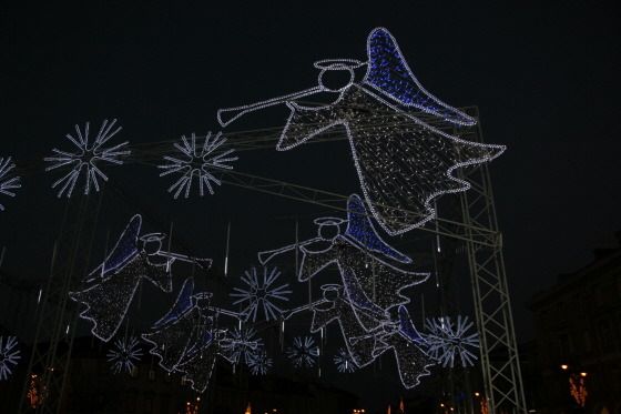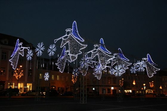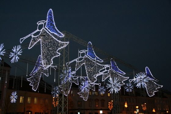 한편 로투쉐 광장은 낮에는 크리스마스 분위기를 그렇게 느끼지 못할 정도이다. 크리스마스 트리다운 크리스마스 트리가 없기 때문이다. 하지만 점점 어둠이 다가오면 색다른 크리스마스 트리를 볼 수 있다. 나팔을 불고 있는 8명의 천사들이 파란 날개에 하얀 옷을 입기 시작한다.