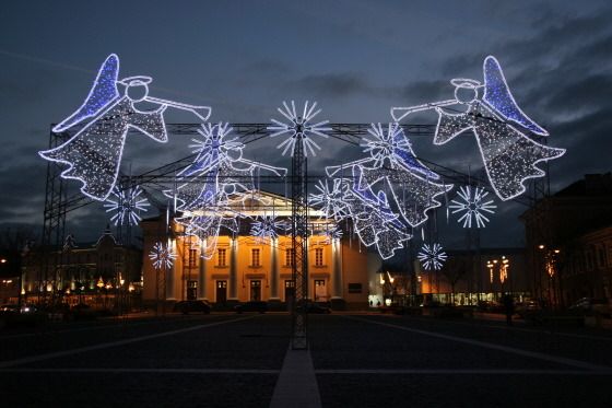 리투아니아 수도 빌뉴스 구시가지를 대표하는 광장이 둘이다. 하나는 대성당 광장, 다른 하나는 로투쉐 광장이다. 대성당 광장에는 크리스마스 트리다운 크리스마스 트리가 세워져 있다. 보통 숲 속에서 베어온 전나무나 전나무 가지로 장식한다. 하지만 올해는 철골과 인조 나뭇가지를 이용했다.