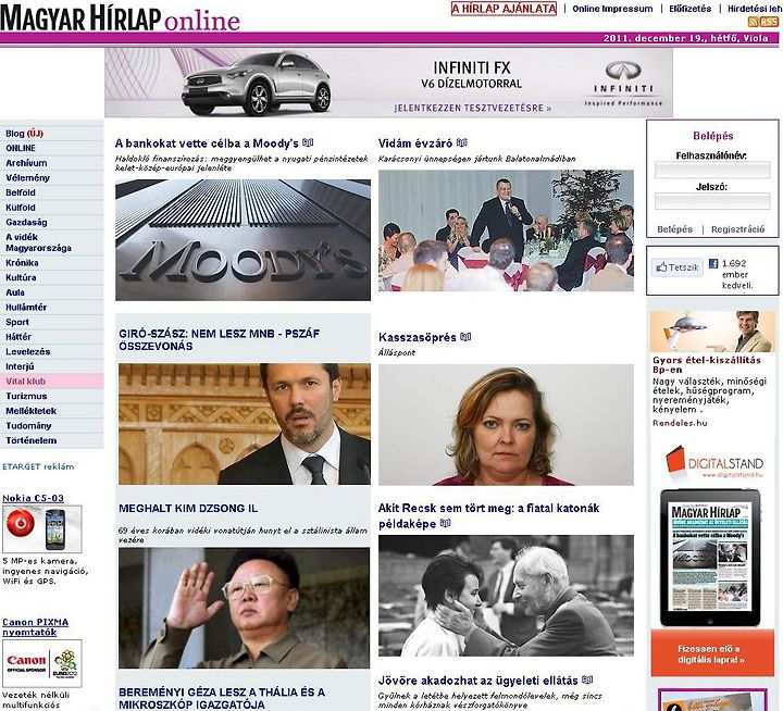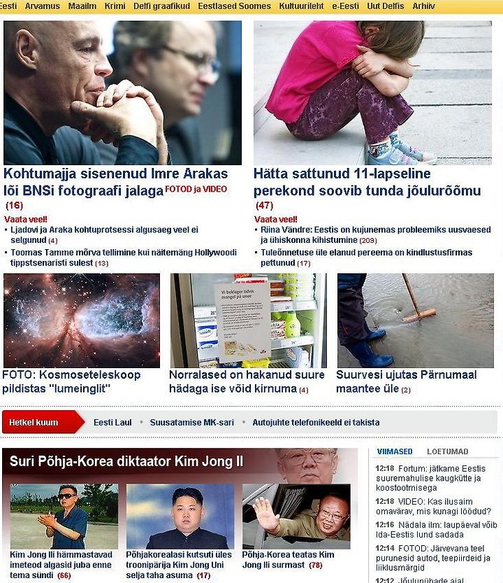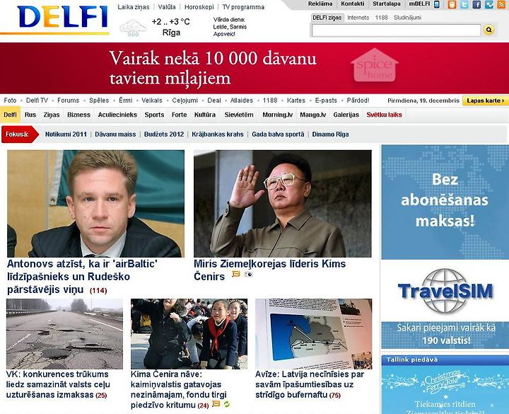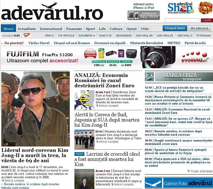 김정일이 사망했다. 한국의 뉴스사이트는 일제히 이와 관련한 소식들을 인터텟 사이트 첫 화면 상단에 비중있게 다루고 있다. 그렇다면 동북아와 세계정세에 큰 영향을 끼칠 김정일 사망 소식을 동유럽 뉴스사이트들은 어떤 비중으로 다룰까 궁금했다. 아래는 여러 나라의 인터넷 뉴스사이트의 상단 부문을 화면캡쳐한 것이다.