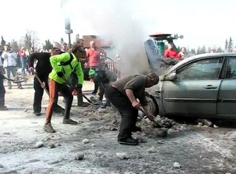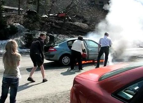 최근 폴란드 남부지방 Biały Krzyż에서 일어난 일이다. 승용차 한 대가 도로에서 불에 타고 있다. 처음에는 차 바닥에서 불길이 올라온다. 운전석에서 할아버지가 나온다. 한 사람이 승용차용 소형 소화기를 열심히 뿌리면서 진화를 시도한다. 역부족이다.