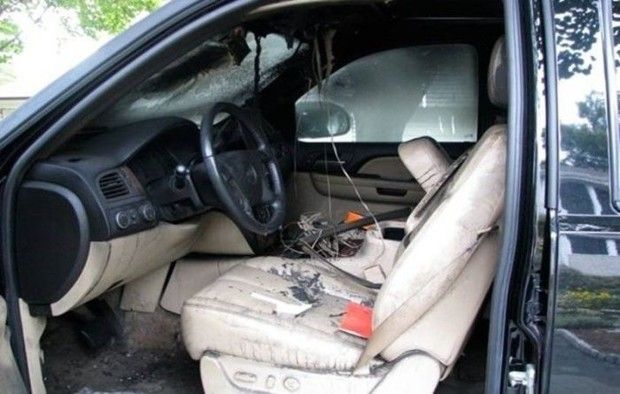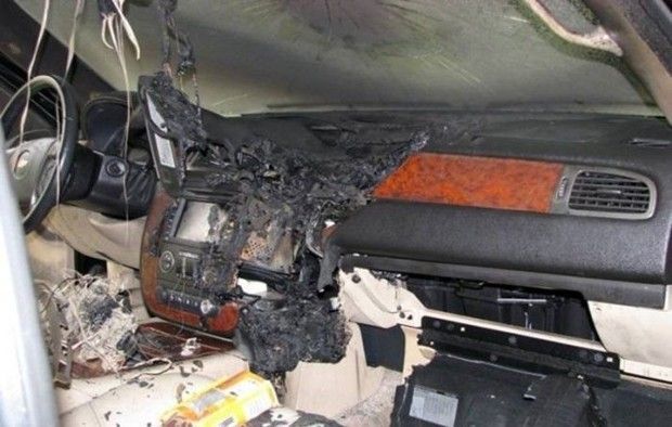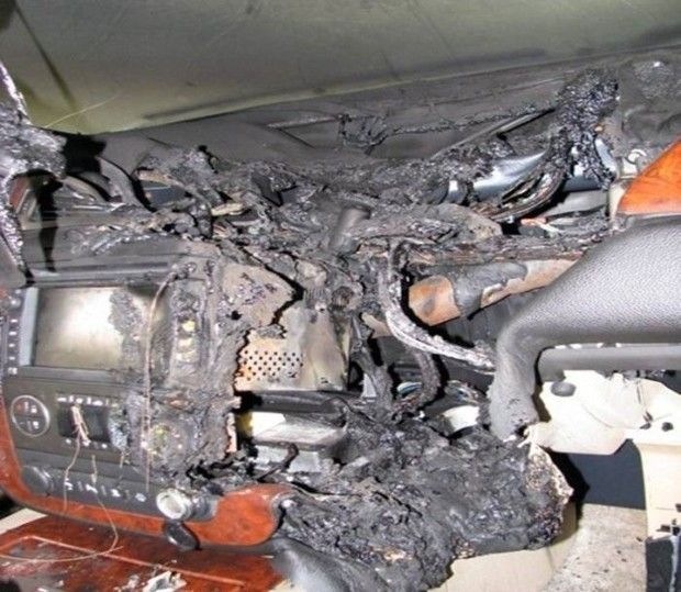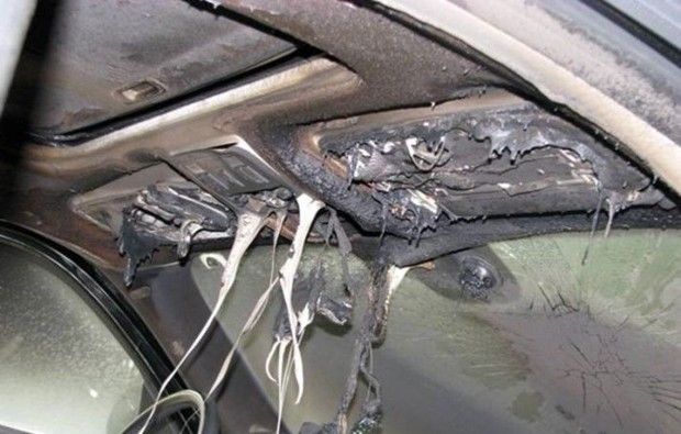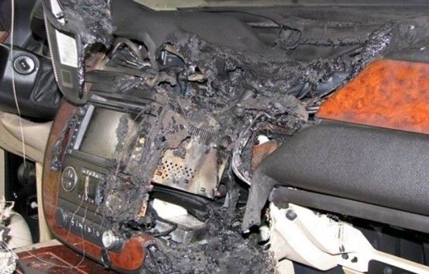 위 사진은 보는 이에게 여름철 네비게이션의 위험성을 선명하게 각인시켜준다. 네비게이션뿐만 아니라 노트북, 넷북, 휴대폰, 음료수 등을 여름철 주차된 차량 안에 두지 않도록 각별히 유의해야 한다.