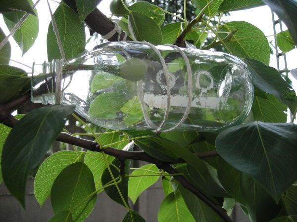 그런데 어떻게 병목보다 훨씬 큰 배가 유리병 속에 들어가 자랄 수 있을까? 알고보면 방법은 아주 간단하다. 5-6월경 어린 배를 입구가 좁은 유리병에 넣고 나무에 고정시켜 재배한다.