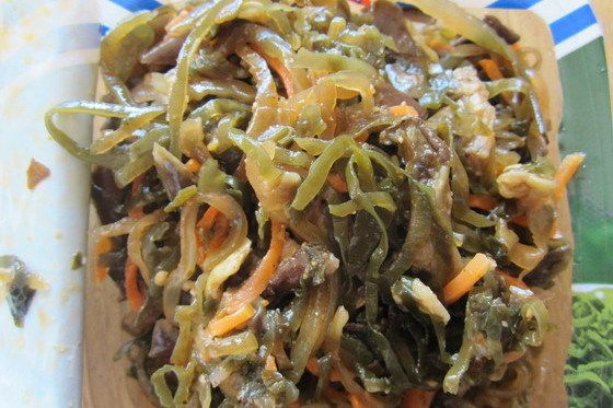 지금껏 리투아니아 슈퍼마겟에 '한국 당근'이라는 이름으로 당근무침이 판매되고 있다는 사실은 알고 있지만, 한국 미역가지무침이 새로운 상품으로 등장한 것은 금시 초문이었다. 슈퍼마겟에 물건을 사러간 아내가 이것을 보자 한국인 남편이 생각나서 사가지고 왔다.