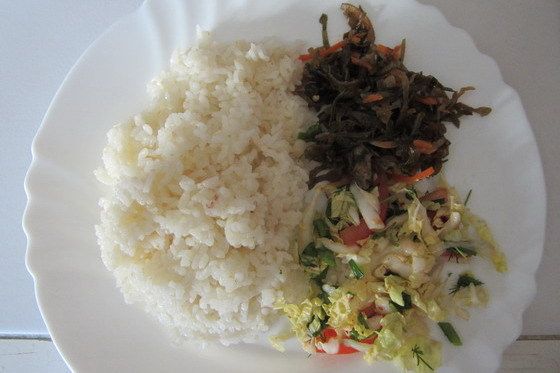 미역은 주로 줄기 부분이었다. 신맛이 좀 과한 듯하지만, 충분히 먹을만한 반찬이었다. 한꺼번에 다 먹기가 아까워서 반쯤 남겨두었다. 약간의 고추장과 함께 비벼서 먹어볼 생각이다.