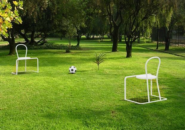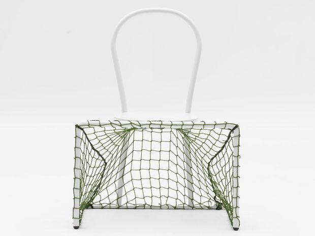 이런 귀차니즘 고수들을 위해 엠마누엘 마지니에조(Emanuela Maginiego)가 "게으른 축구"를 생각내었다. 의자 하단부를 축구 골대처럼 만들었다. 단순하지만 기발하다. [사진출처 image source link]