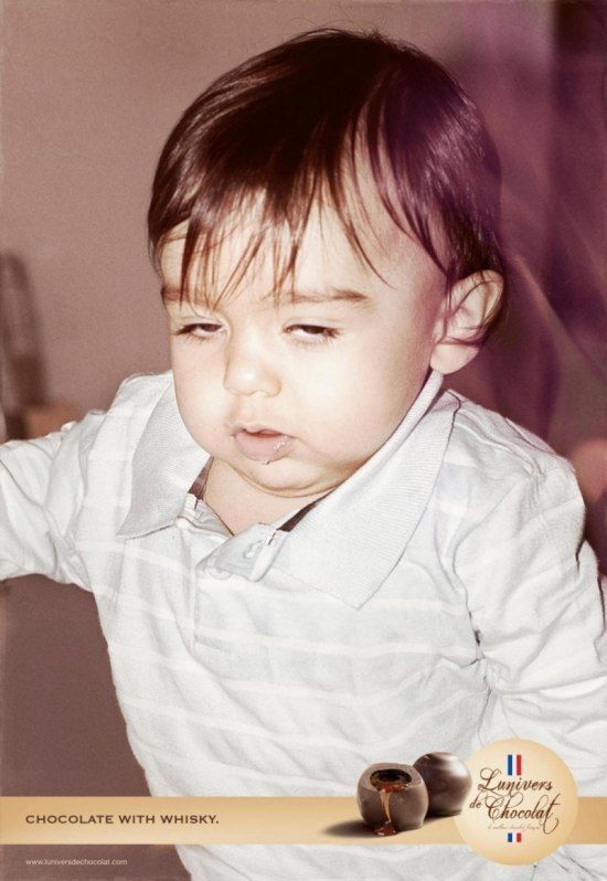 바로 위스키를 든 초콜릿이다. 정말 먹고 찍은 것인지는 알 수 없지만 이는 위스키 초콜릿 광고이다.