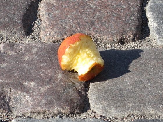 최근 이 광장을 걷고 있는데 떨어진 사과 하나가 눈길을 끌었다. 누가 먹던 사과였을까?