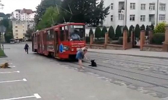 이에 멈춰선 전차의 운전사가 밖으로 나와 개를 일으켜세운다. 마치 개가 전차를 인도하는 듯하다. 다행히 개는 전찻길을 벗어난다. 이 동영상은 우크라이나 서부 도시 리비우(Lviv)의 거리에서 촬영된 것으로 알려져 있다.