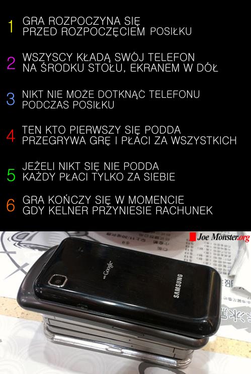 폴란드 누리꾼들 사이에 화제가 된 글이 있어 소개한다. 모임에서 휴대폰을 먼저 사용하는 사람이 비용을 전부 부담하는 놀이이다. [사진출처 image source link]