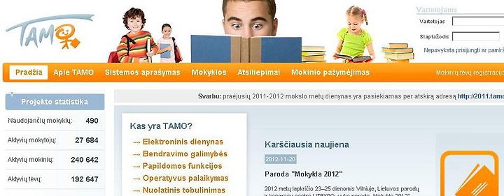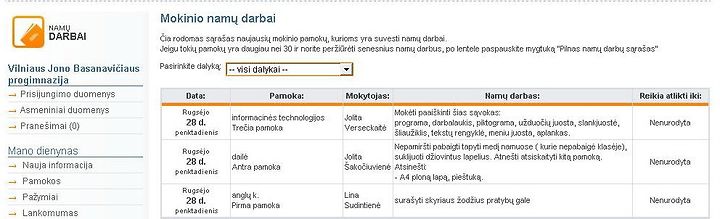 그런데 성적통지표를 부모가 더 이상 기다릴 필요도 없고, 자녀가 조작할 수도 없게 되었다. 리투아니아 교육에 중요한 역할을 하는 웹사이트가 있다. 지난 9월 5학년이 된 후부터 학교에서 돌아온 딸아이는 자주 한 웹사이트를 들어간다. 로그인할 때마다 아빠가 보지 못하도록 비밀번호를 엄밀히 친다.