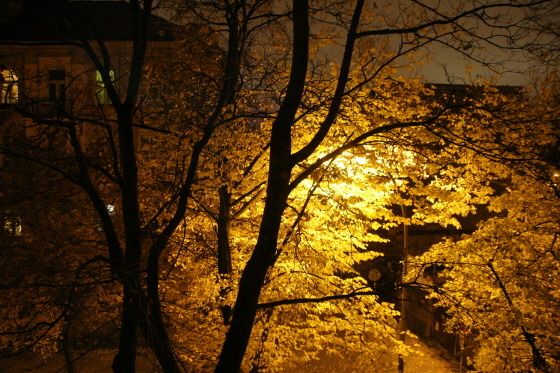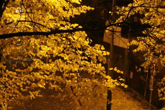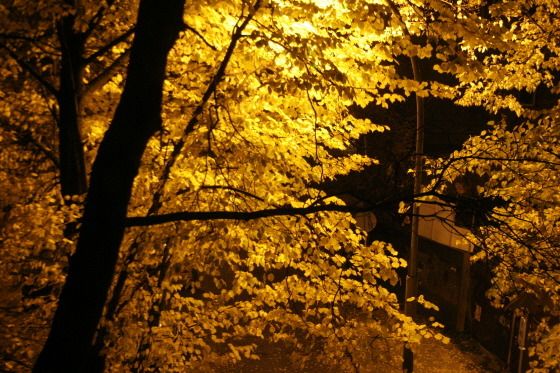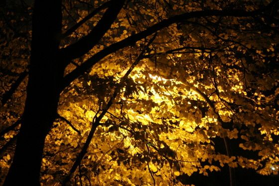 가로등 불빛에 비치는 단풍잎이 아름답기 때문이다.