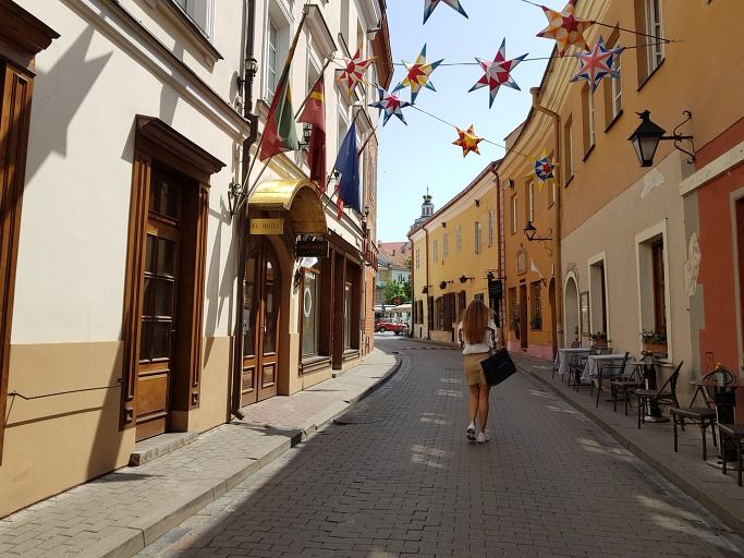 북유럽 리투아니아 빌뉴스 구시가지는 유네스코 세계문화유산으로 등재되어 있다. 보통 4월 하순부터 구시가지 거리는 관광객들로 북적된다. 그런데 코로나바이러스 확산으로 인하여 올해는 관광여행업이 초토화되었다. 아래 사진 속 거리는 관광객 유동인구가 많은 거리 중 하나다. 거의 인적없는 거리가 요즘 세태를 그대로 방증하고 있다. 빌뉴스 시청은 식당이나 커피숍 등이 인도까지 무상으로 활용하면서 영업을 할 수 있도록 돕고 있다.